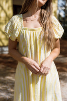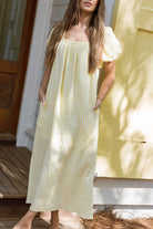 GARMENT DETAILS: Lightweight cotton maxi dress with square, elasticated neckline, puffed sleeves, and relaxed silhouette with dual side pockets. Lined.