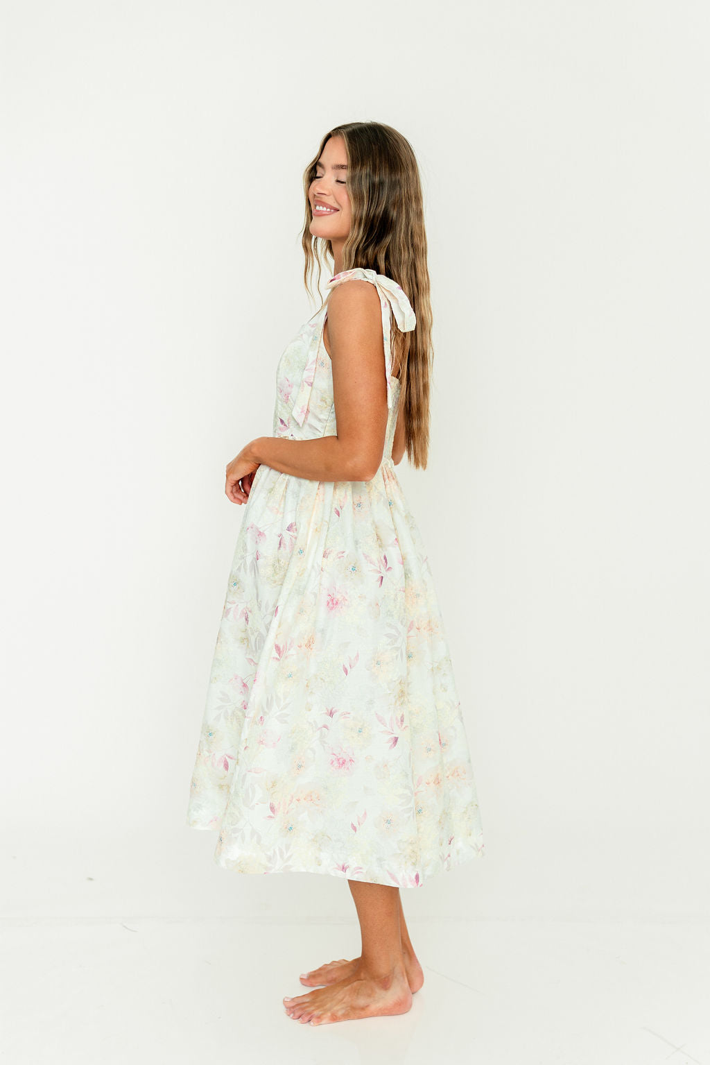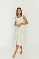 The Jenny Floral Midi Dress is the perfect tea party dress! Constructed from lightweight floral-print cotton, this charming midi dress has a hint of vintage allure; it's a lovely choice for a warm-weather special event.