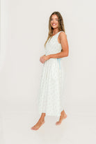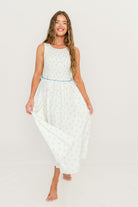 Giselle 100% Cotton Midi Dress in Cream/Blue