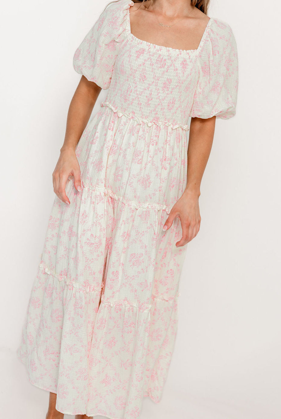 Karolyn Antique Puff Sleeve Tiered Maxi Dress in Pink