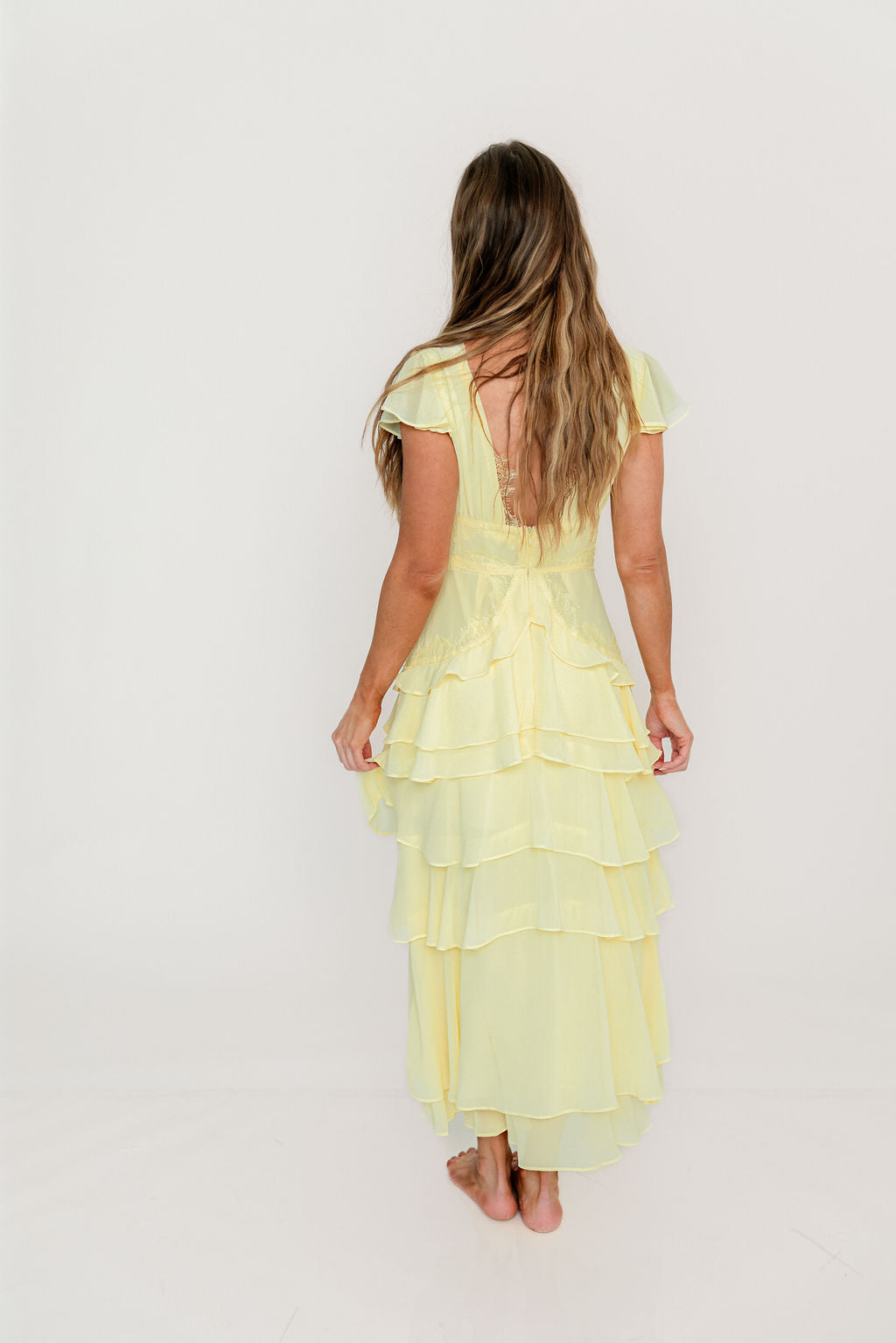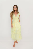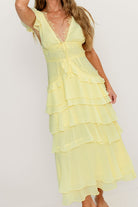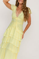 Jessa Tiered Ruffle Midi Dress in Yellow