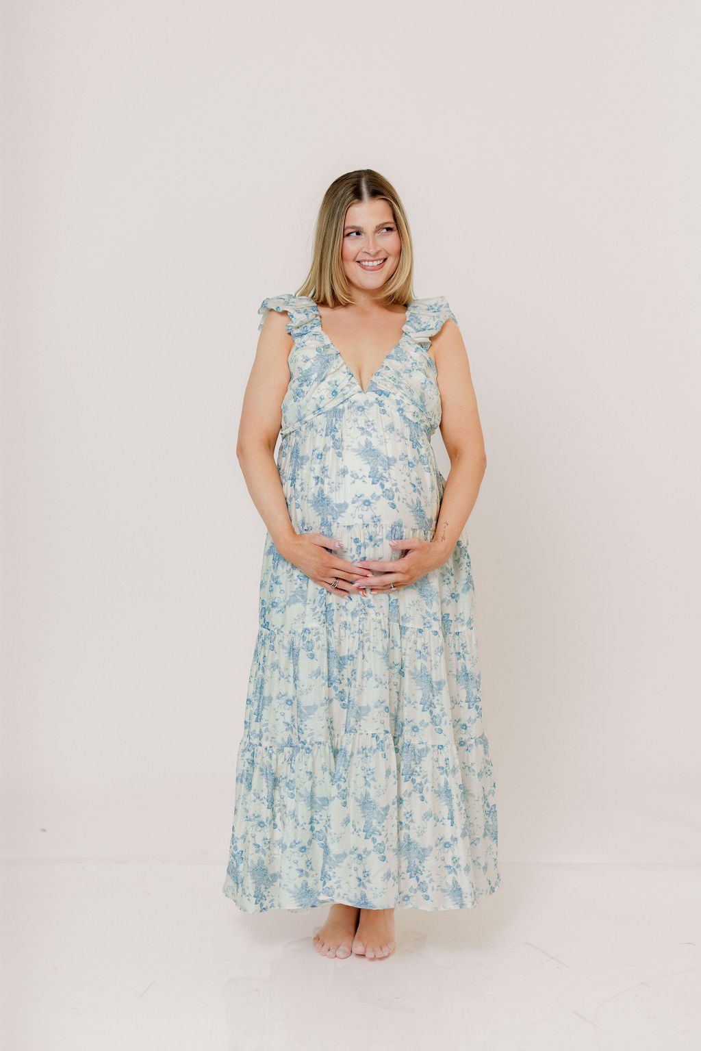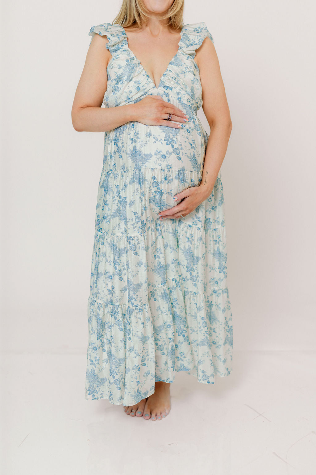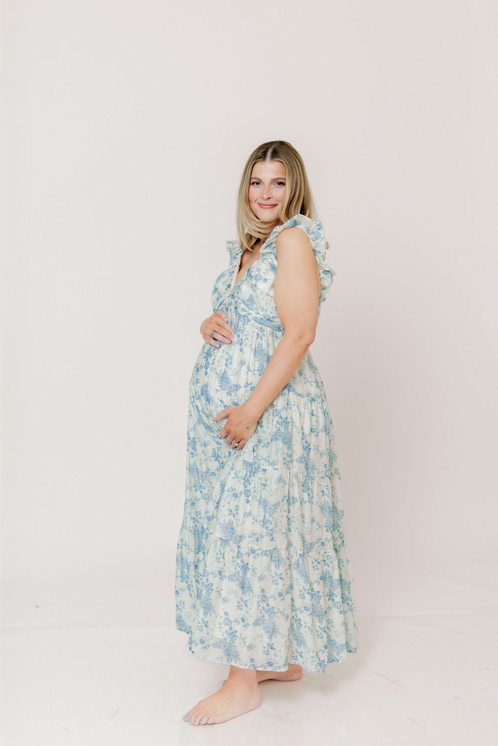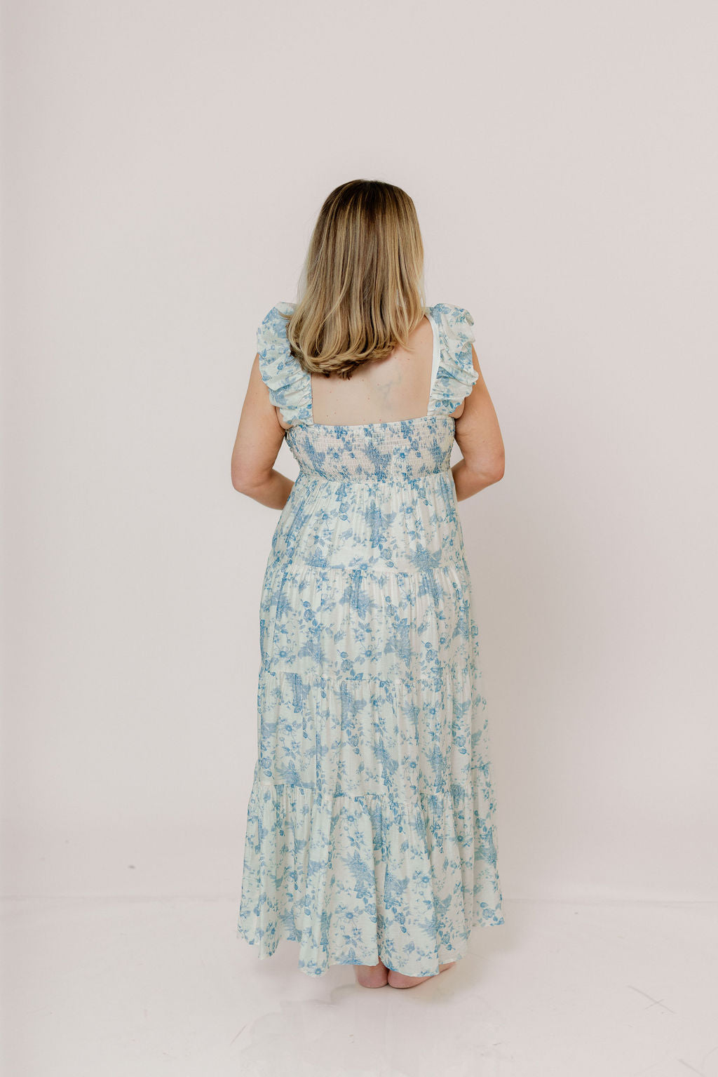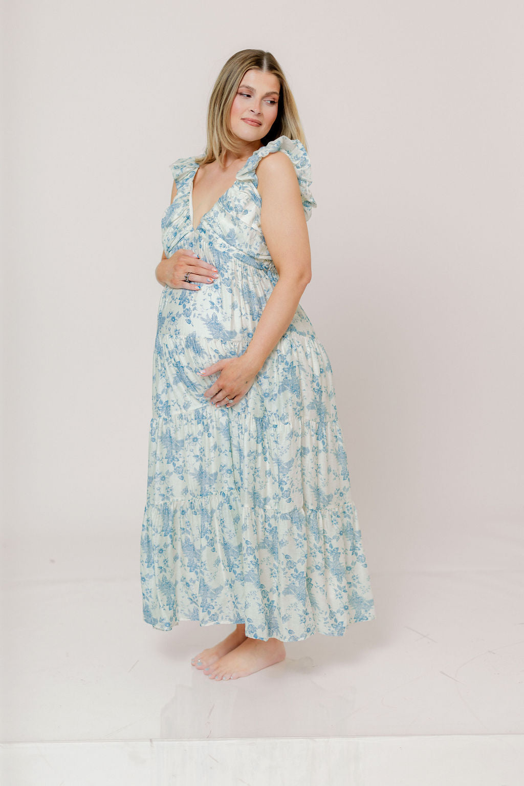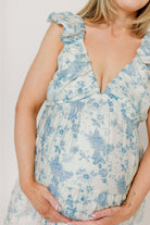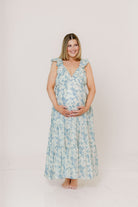 Katy Pleated Bodice Maxi Dress in Blue Floral - Bump Friendly