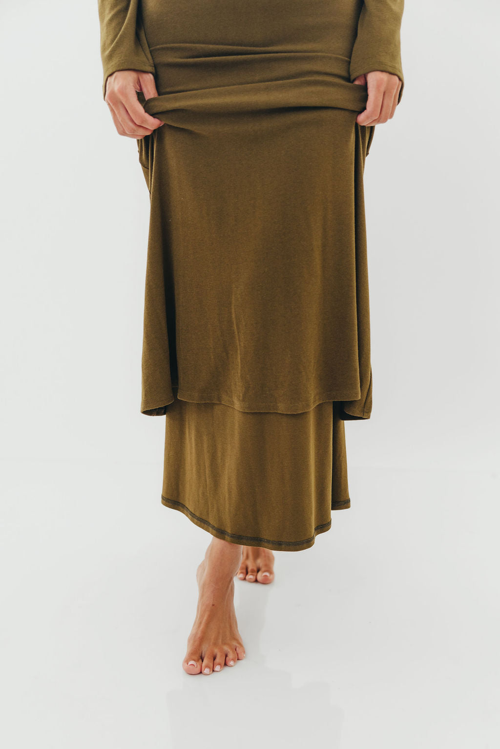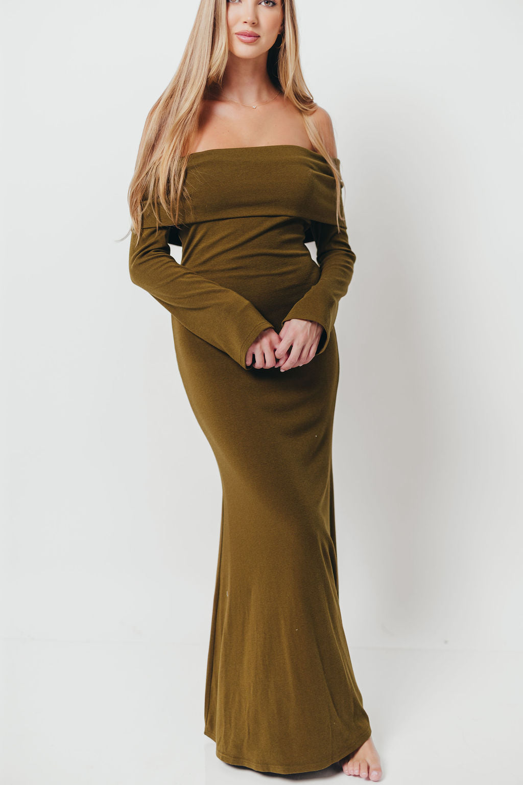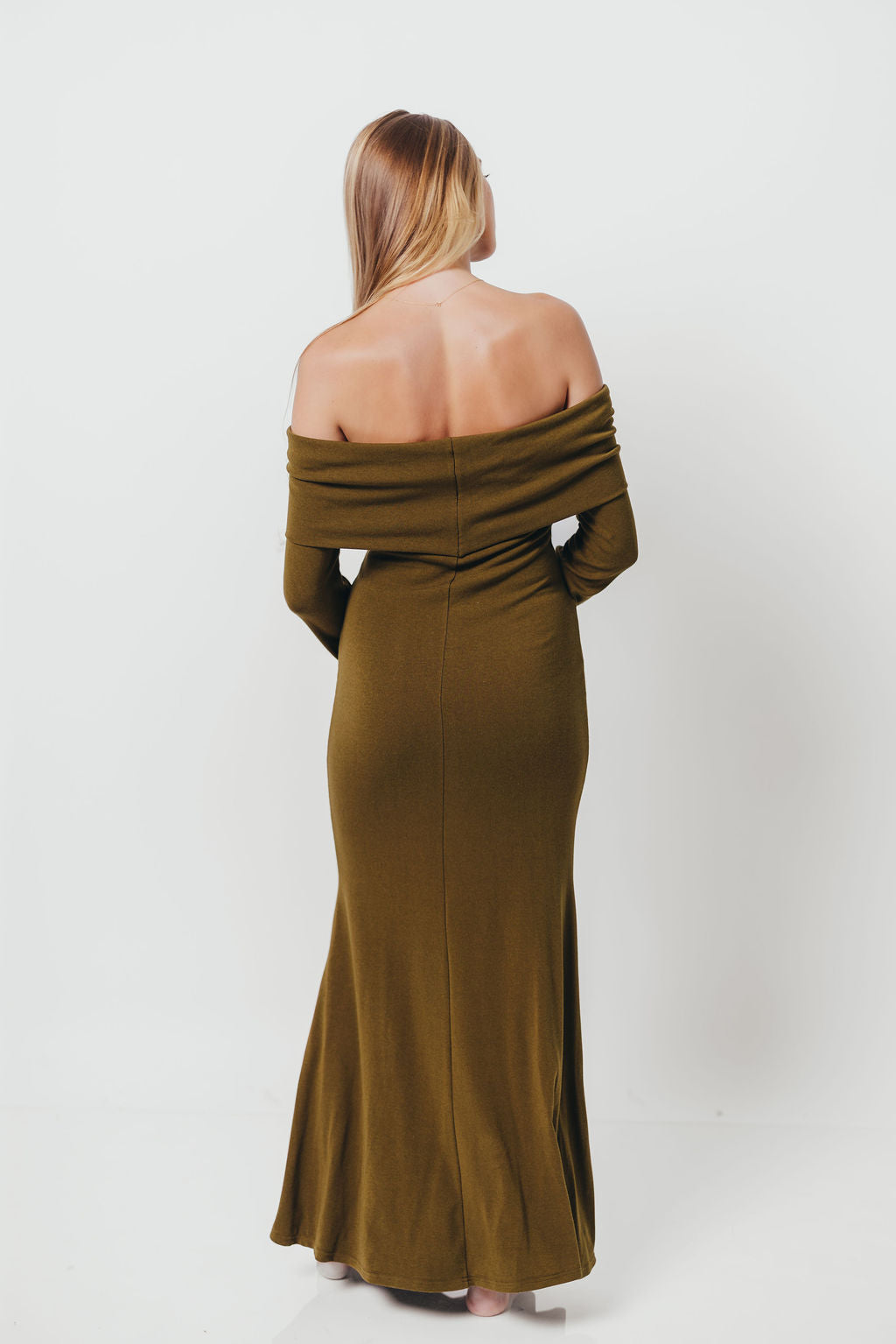 Monroe Maxi Dress with Long Sleeves in Olive Green - Bump Friendly