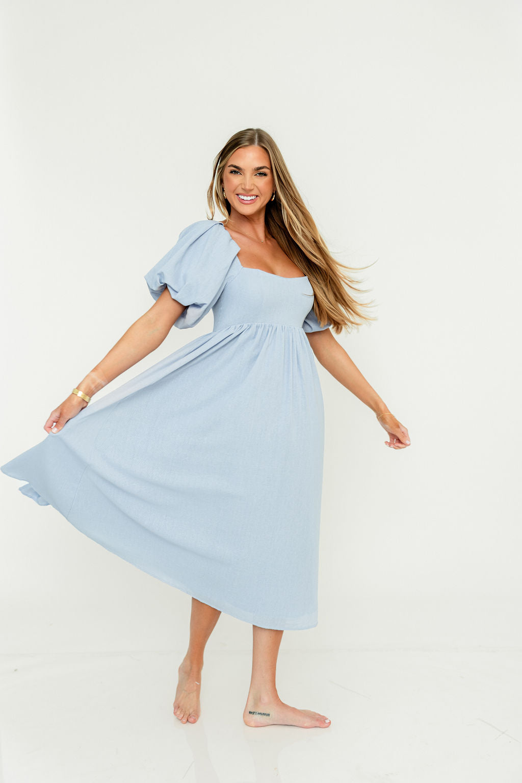 The Hamilton is everything you're looking for in a midi dress - charming, sophisticated, and absolutely flattering. It features premium quality details, like a sweetheart neckline and gorgeous balloon sleeves that can be worn on or off the shoulder. It's an unforgettable choice for every body type, and extra-comfy for expecting mamas! The best part? You can wear this beauty long after your sweet baby arrives!