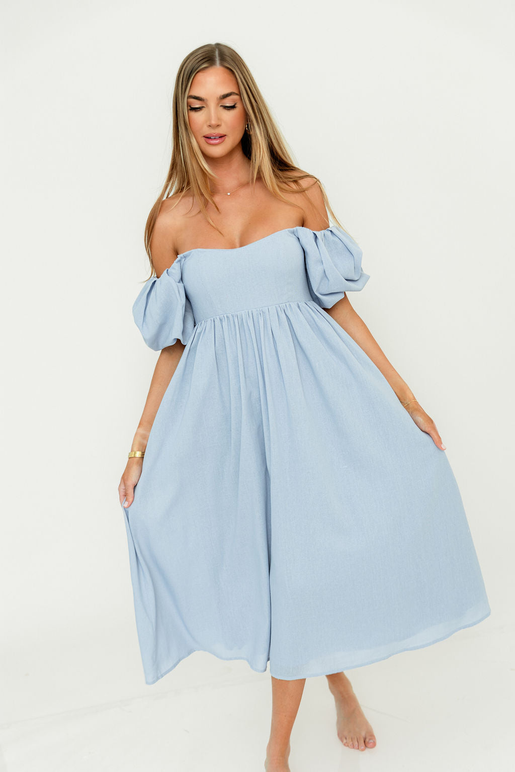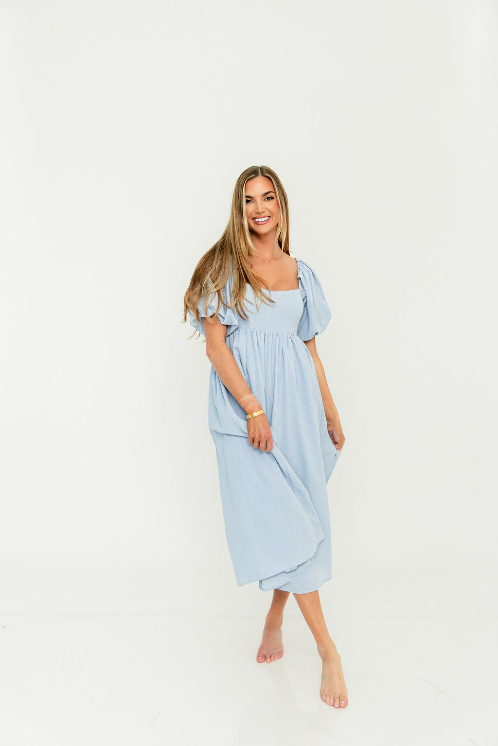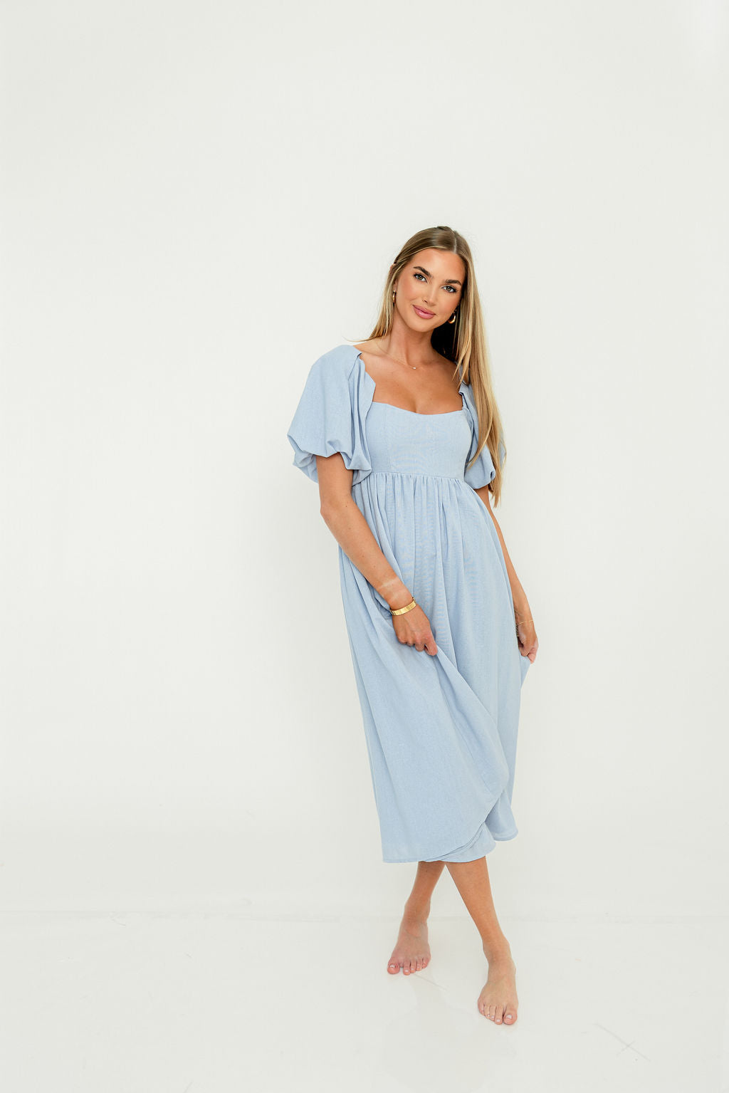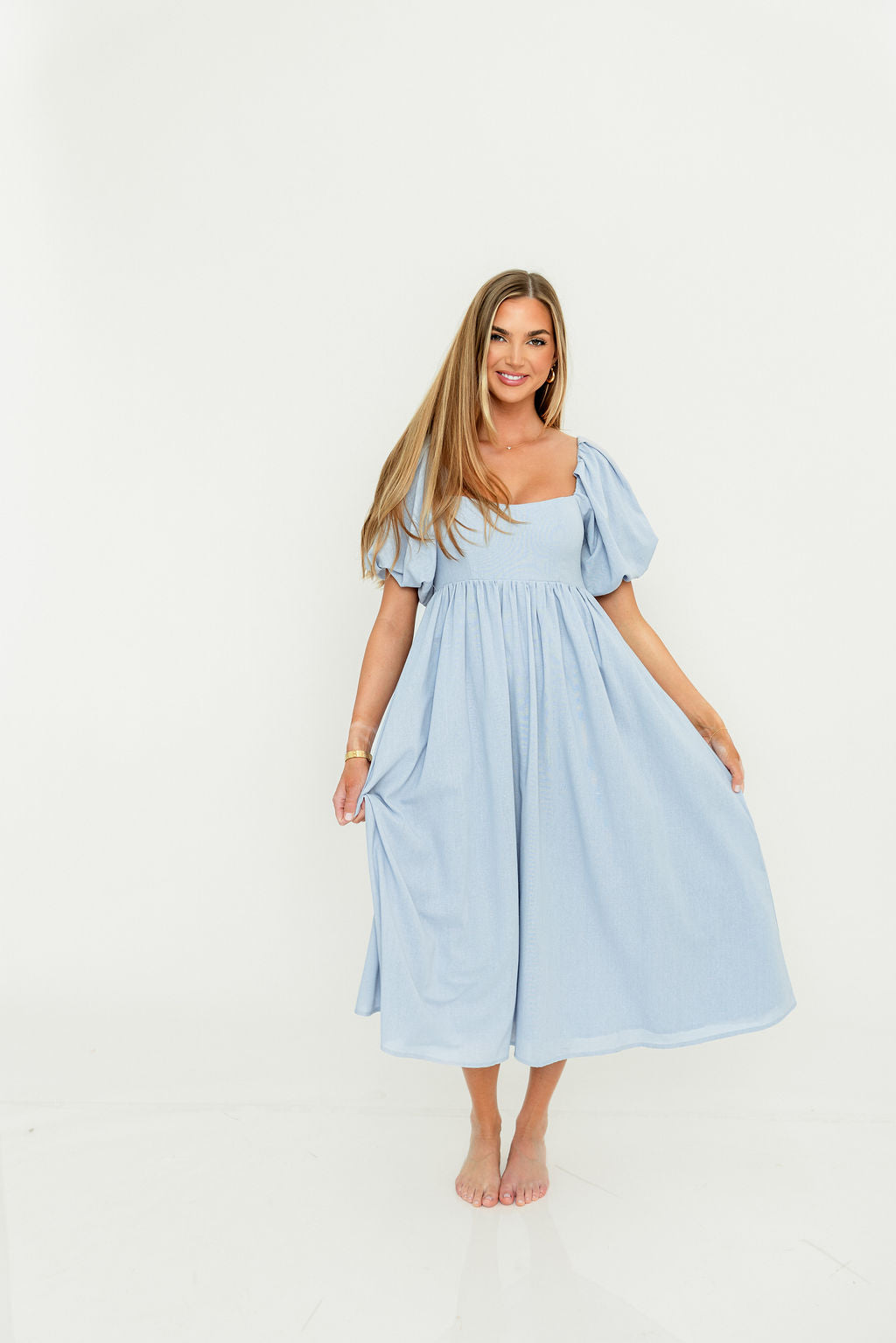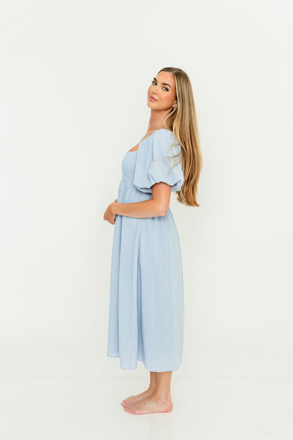 Hamilton Midi Dress in Light Blue - Bump Friendly & Inclusive Sizing (S-2XL)
