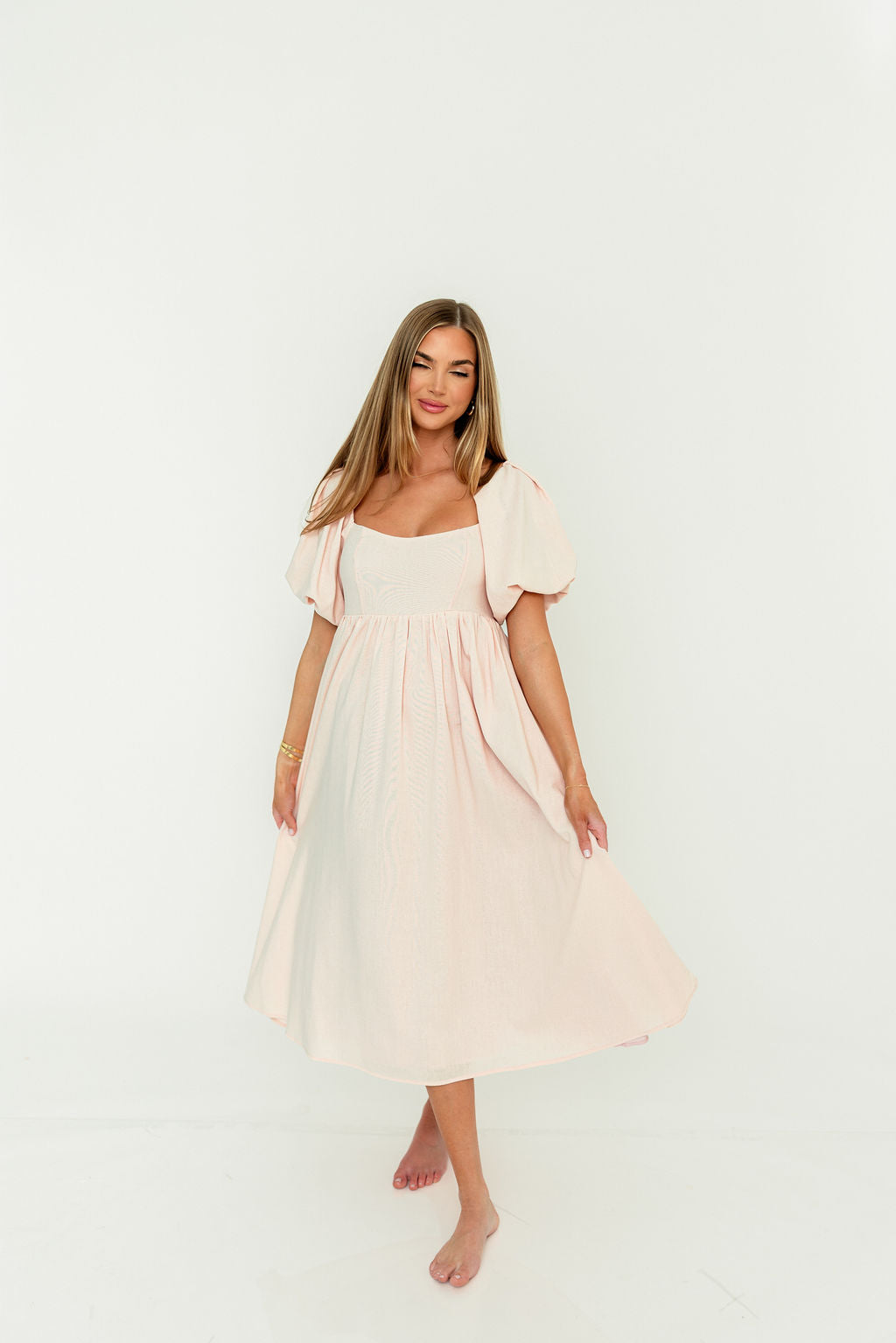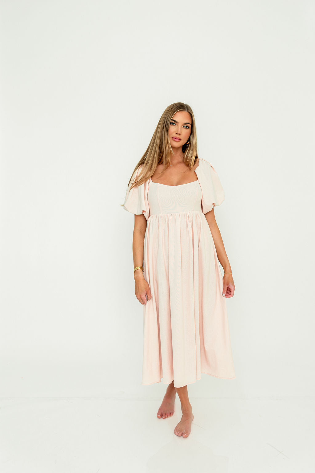 The Hamilton is everything you're looking for in a midi dress - charming, sophisticated, and absolutely flattering. It features premium quality details, like a sweetheart neckline and gorgeous balloon sleeves that can be worn on or off the shoulder. It's an unforgettable choice for every body type, and extra-comfy for expecting mamas! The best part? You can wear this beauty long after your sweet baby arrives!