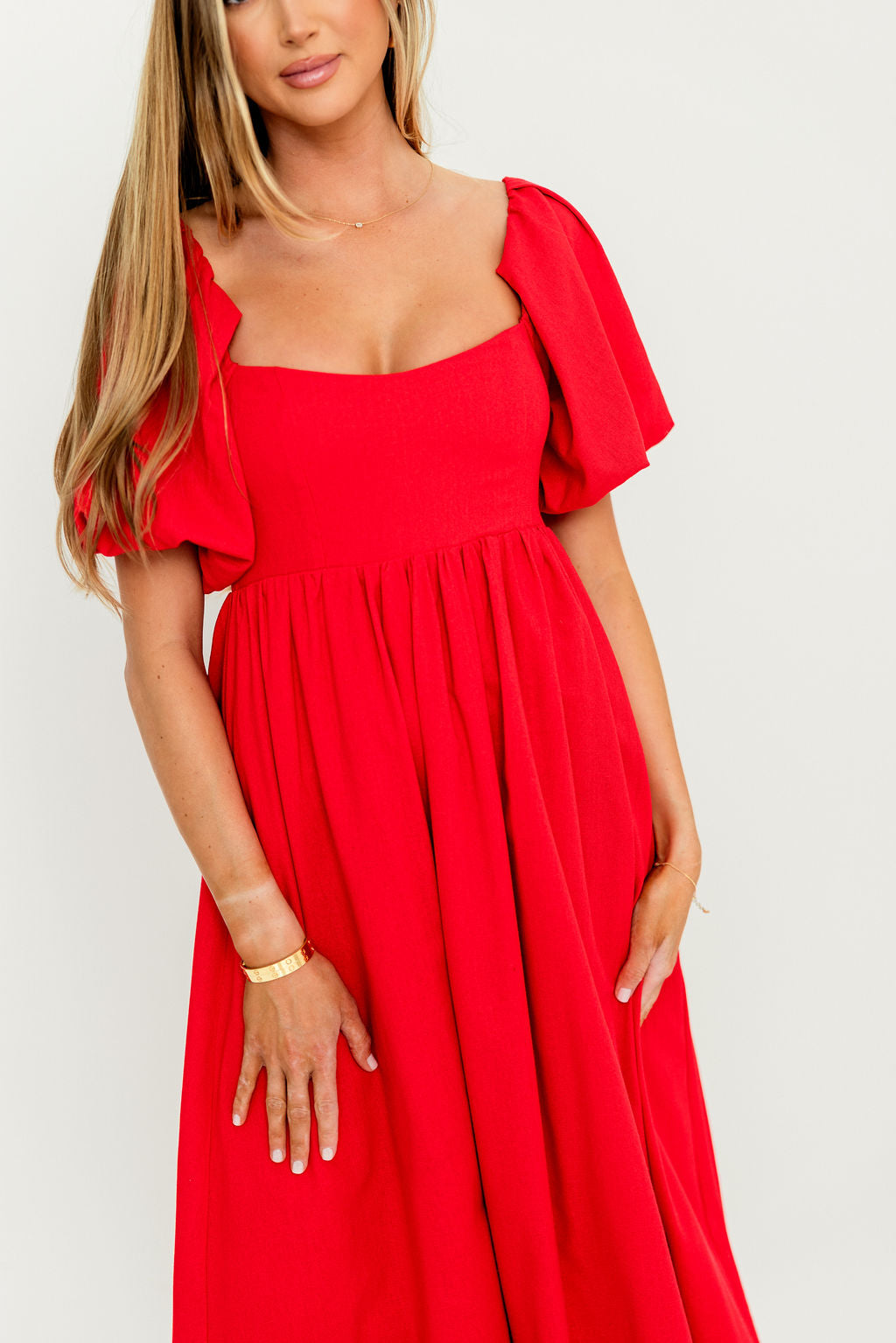 Hamilton Midi Dress in Red - Bump Friendly (S-XL)