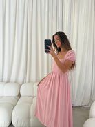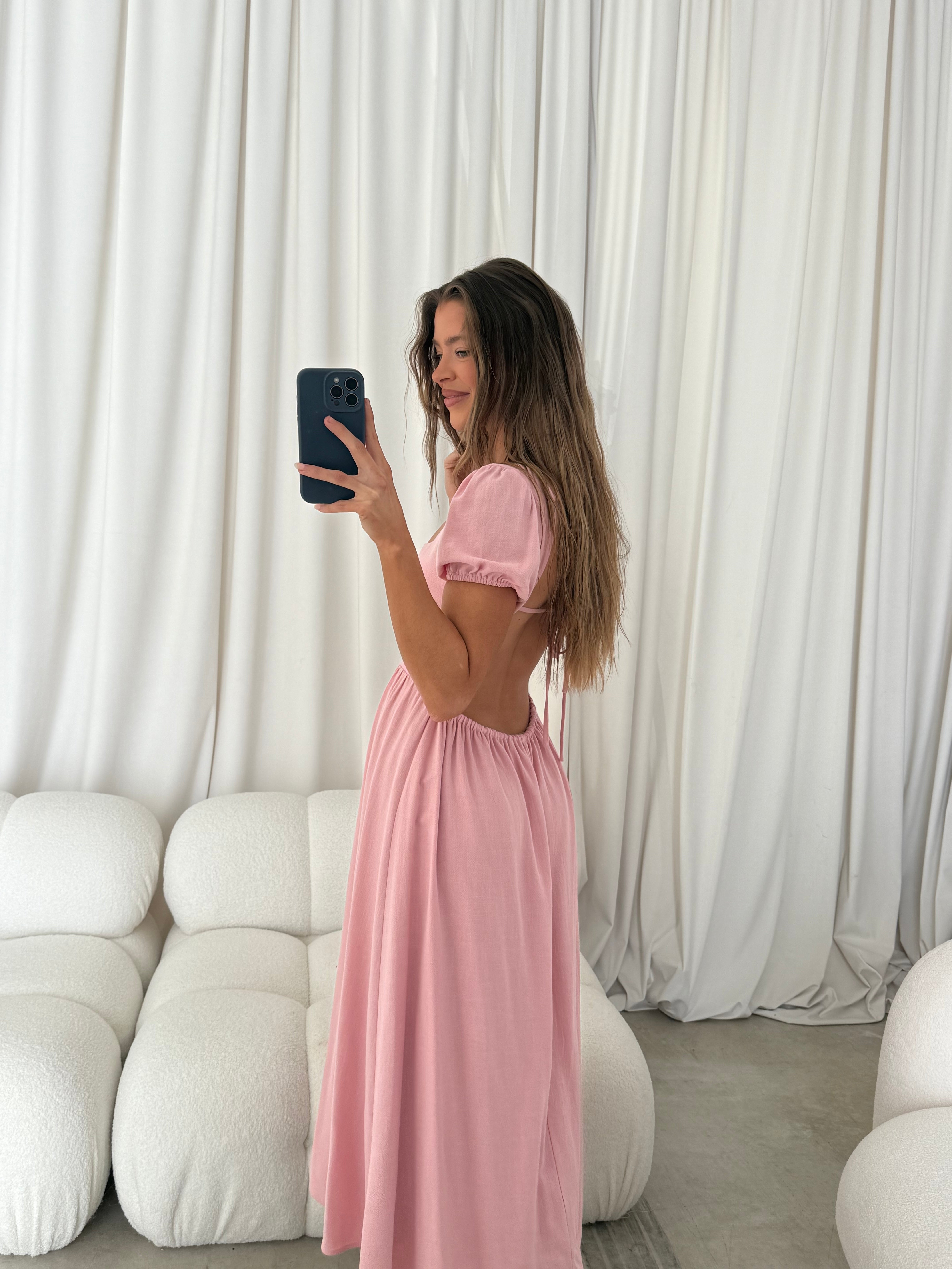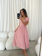 August Open Back Midi Dress in Peony - Bump Friendly