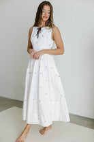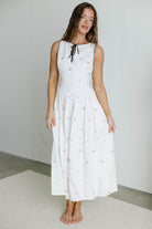 Meet your new favorite sundress for summer 2026! The Becky Midi Dress offers the comfort and sustainability of cotton poplin, with dainty small-scale embroidery and a fitted bodice with smocked back panel for just the right amount of stretch. It's a charming choice for Sunday mornings or elevated sightseeing.