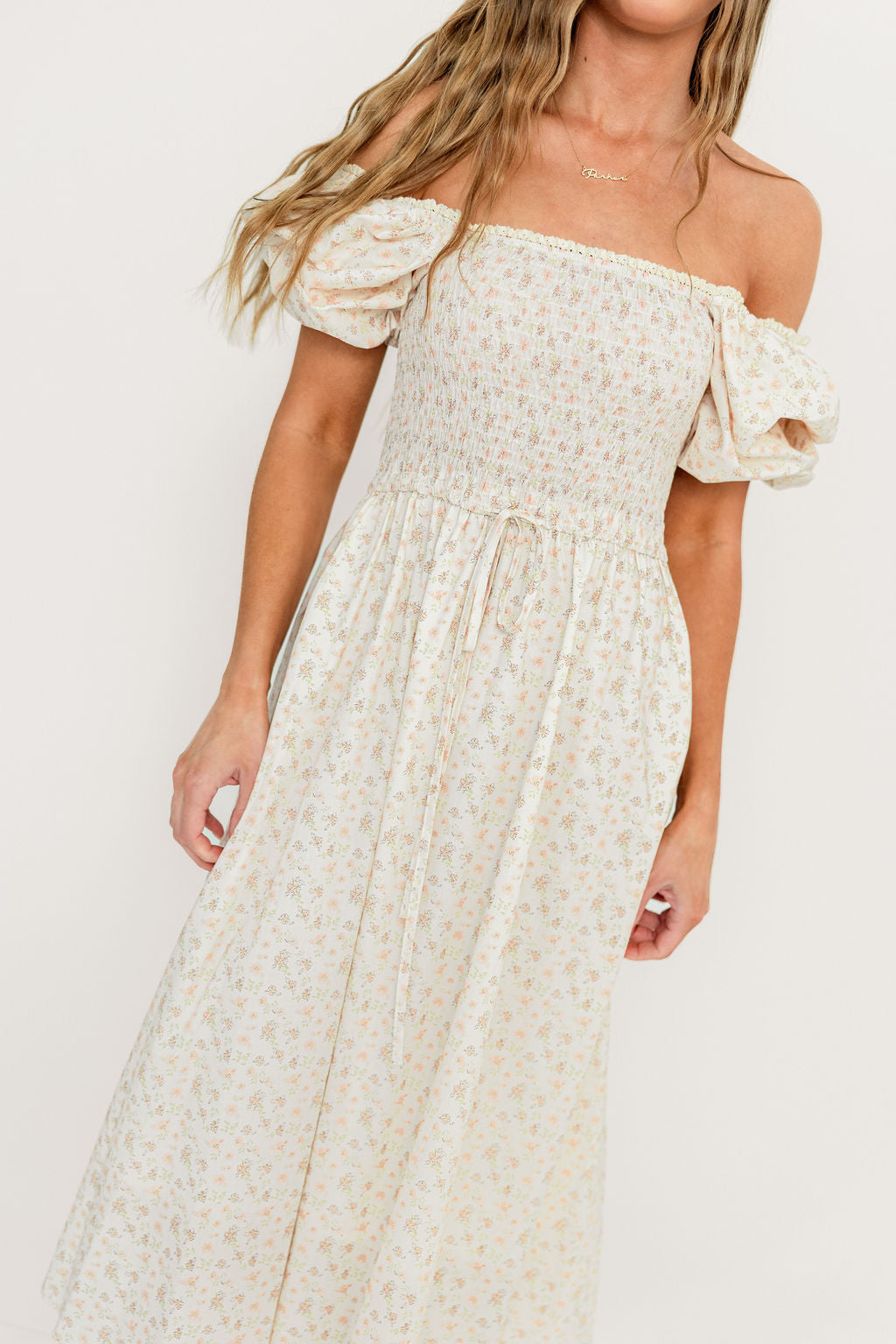 Chrishell Off Shoulder Maxi Dress in Cream
