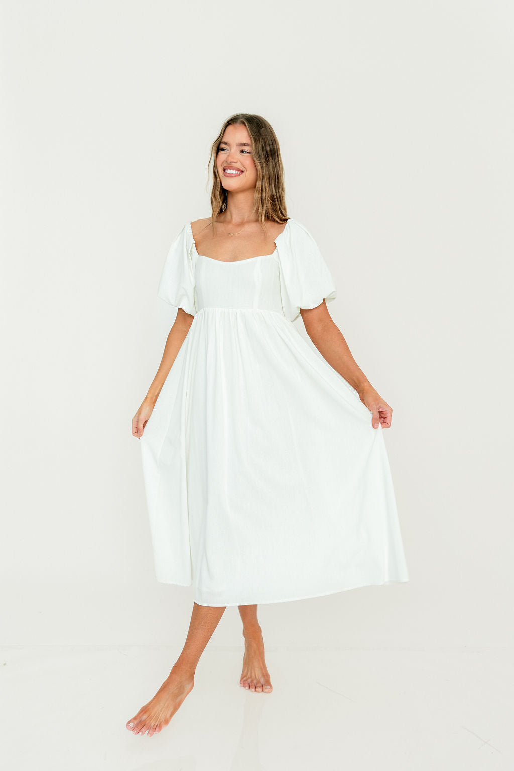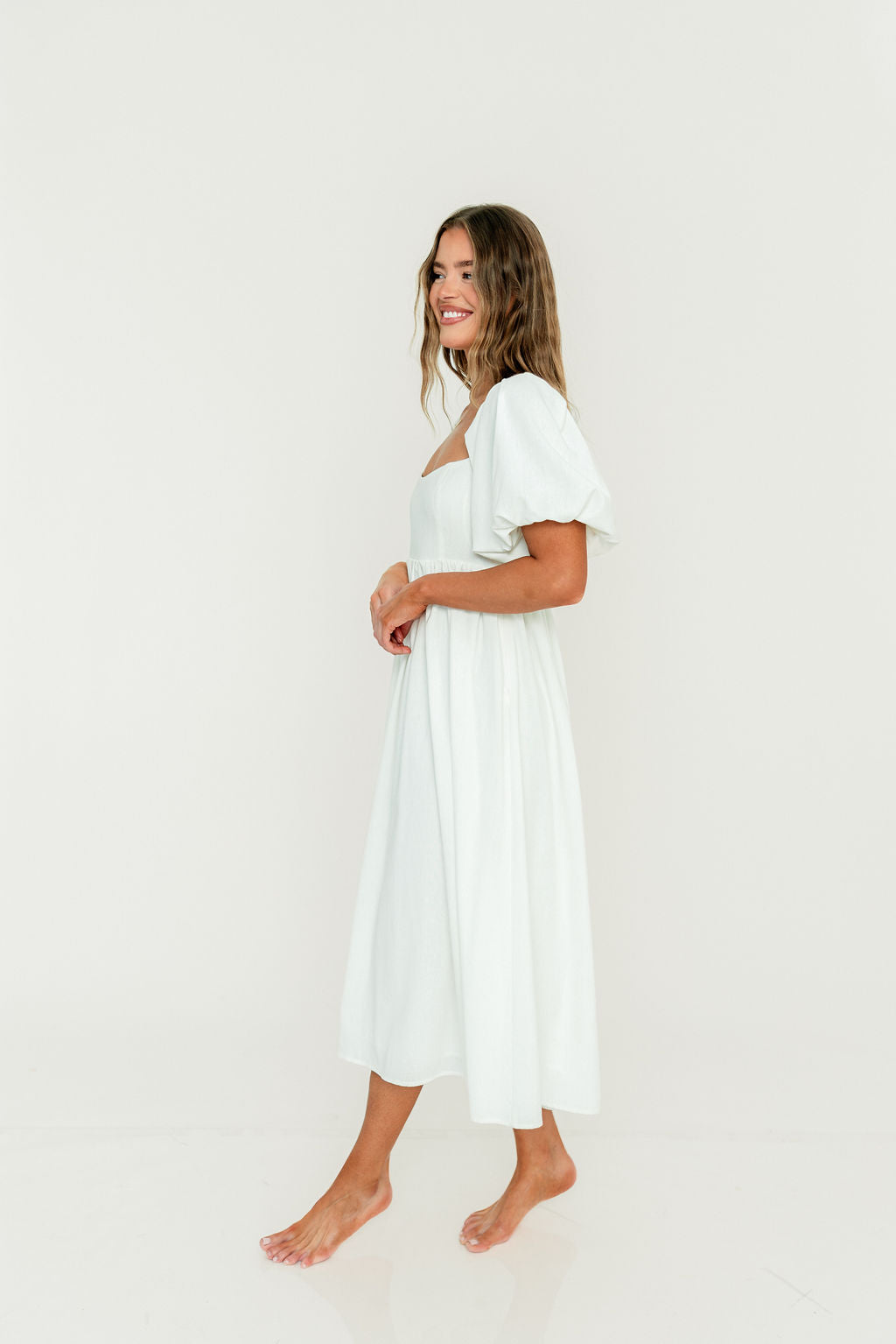 Hamilton Midi Dress in Off-White - Bump Friendly and Inclusive Sizing (S-2XL)