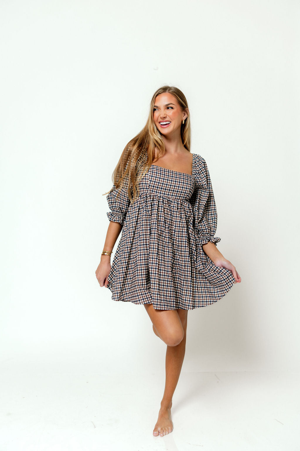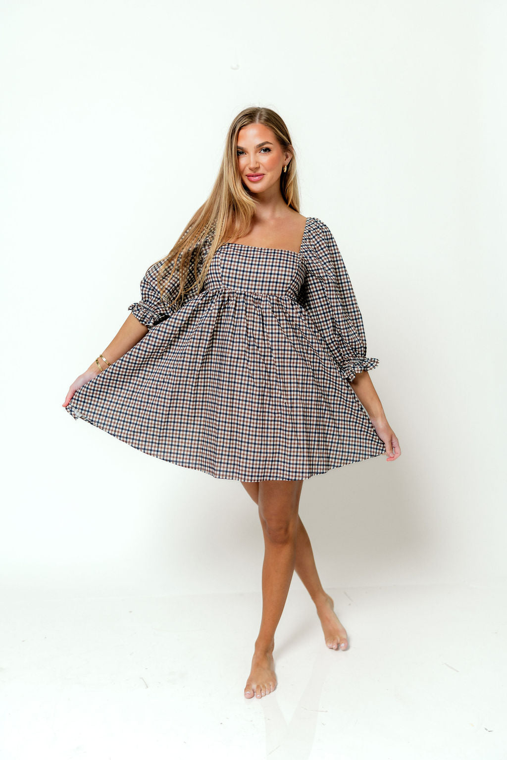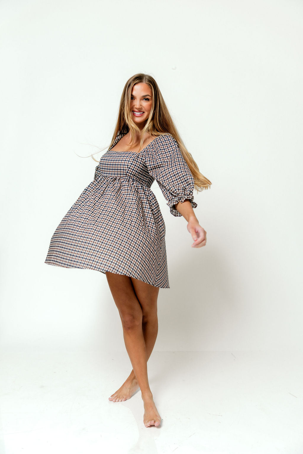 Sienna 100% Cotton Puff Sleeve Maxi Dress in Muted Gold Plaid - Bump Friendly *Final Sale*
