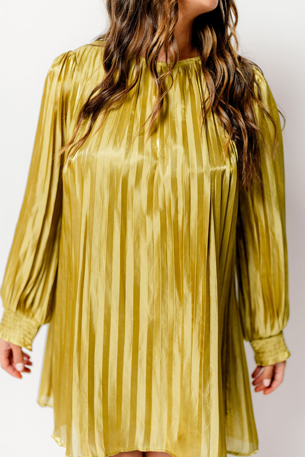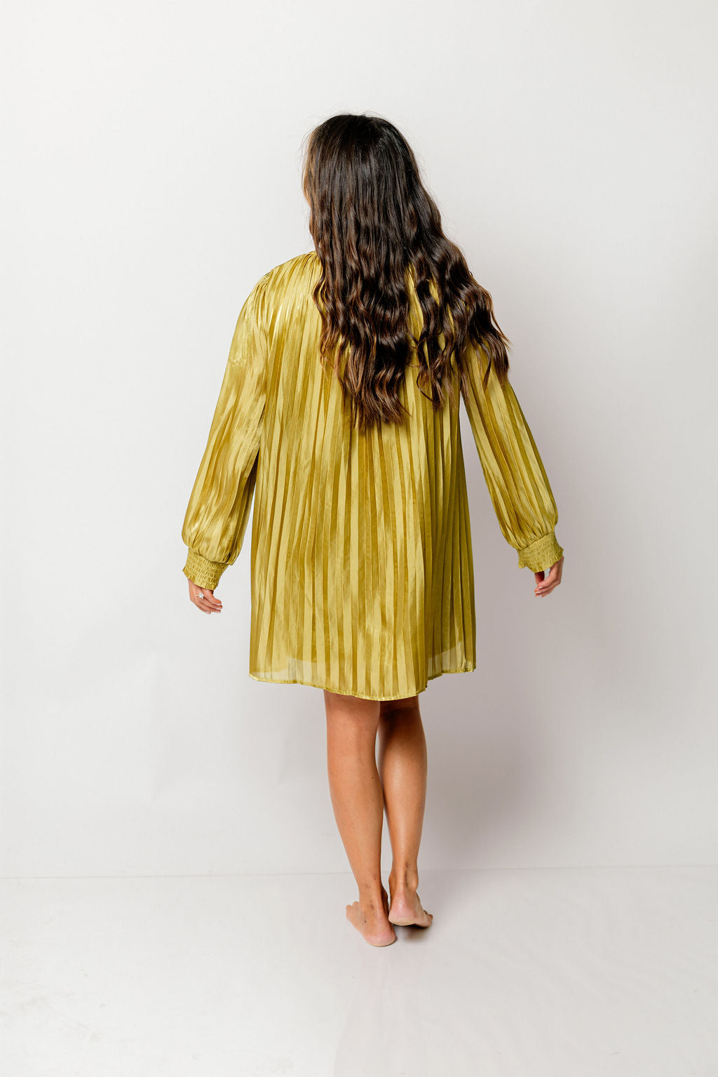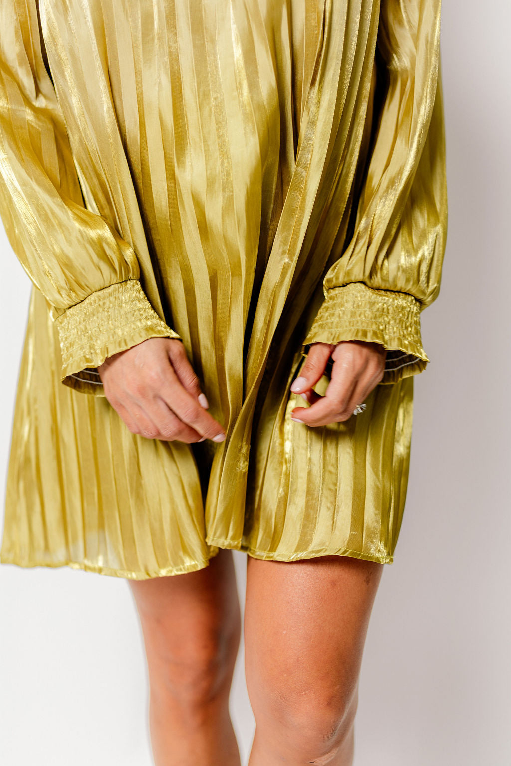 Sabine Metallic Pleated Mini Dress in Olive *Final Sale*