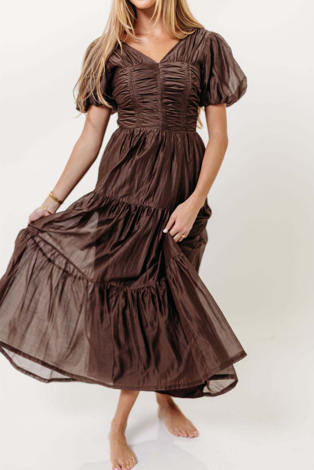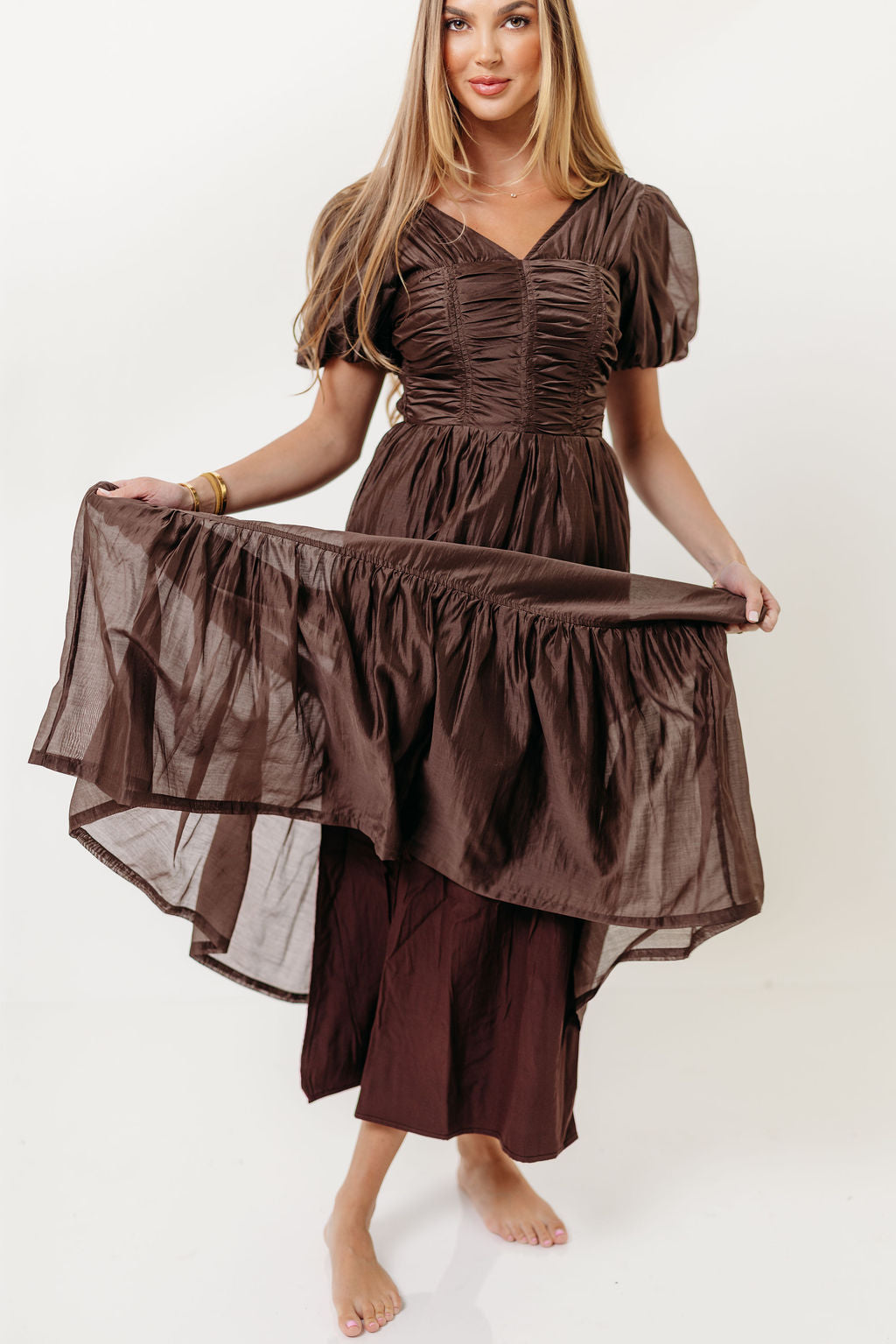 Katy Pleated Bodice Maxi Dress in Hazelnut - Bump Friendly
