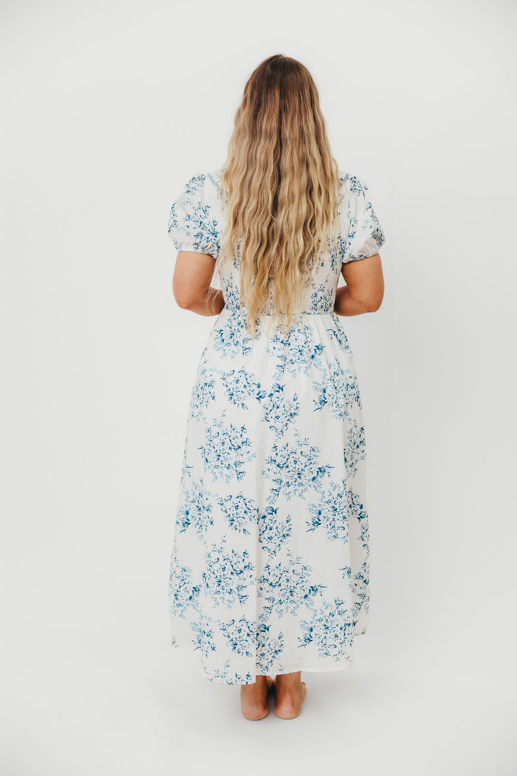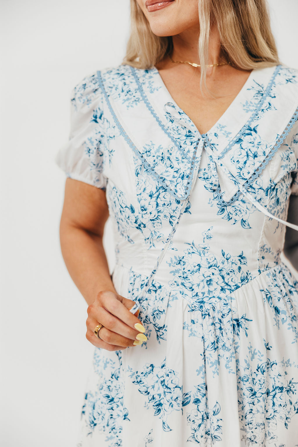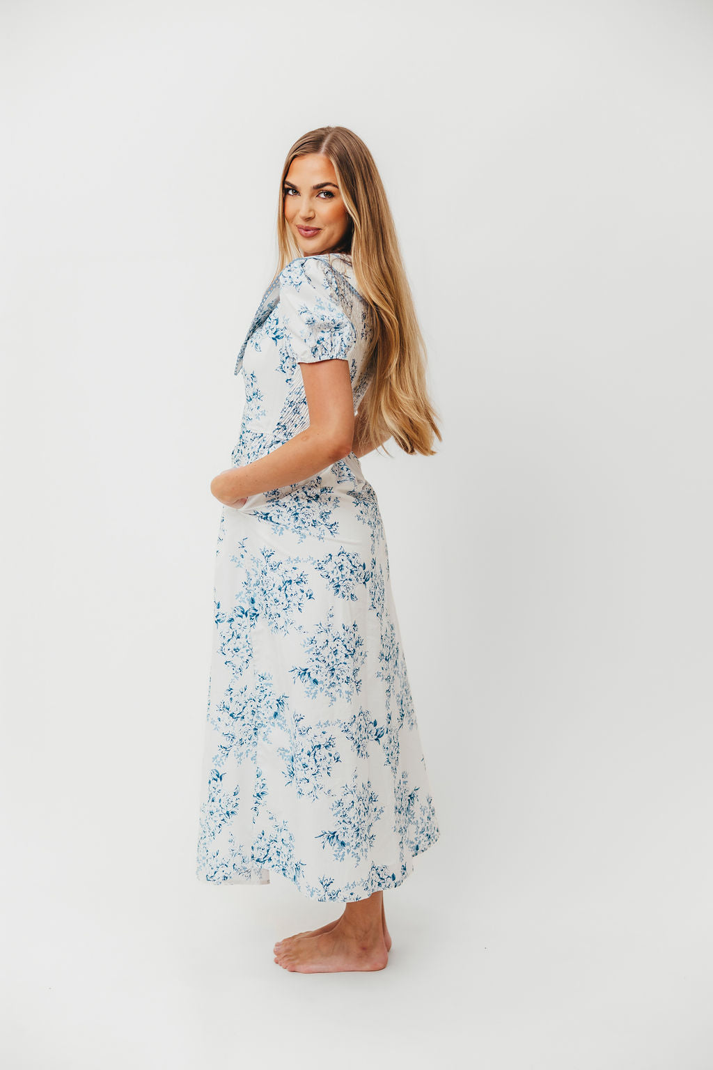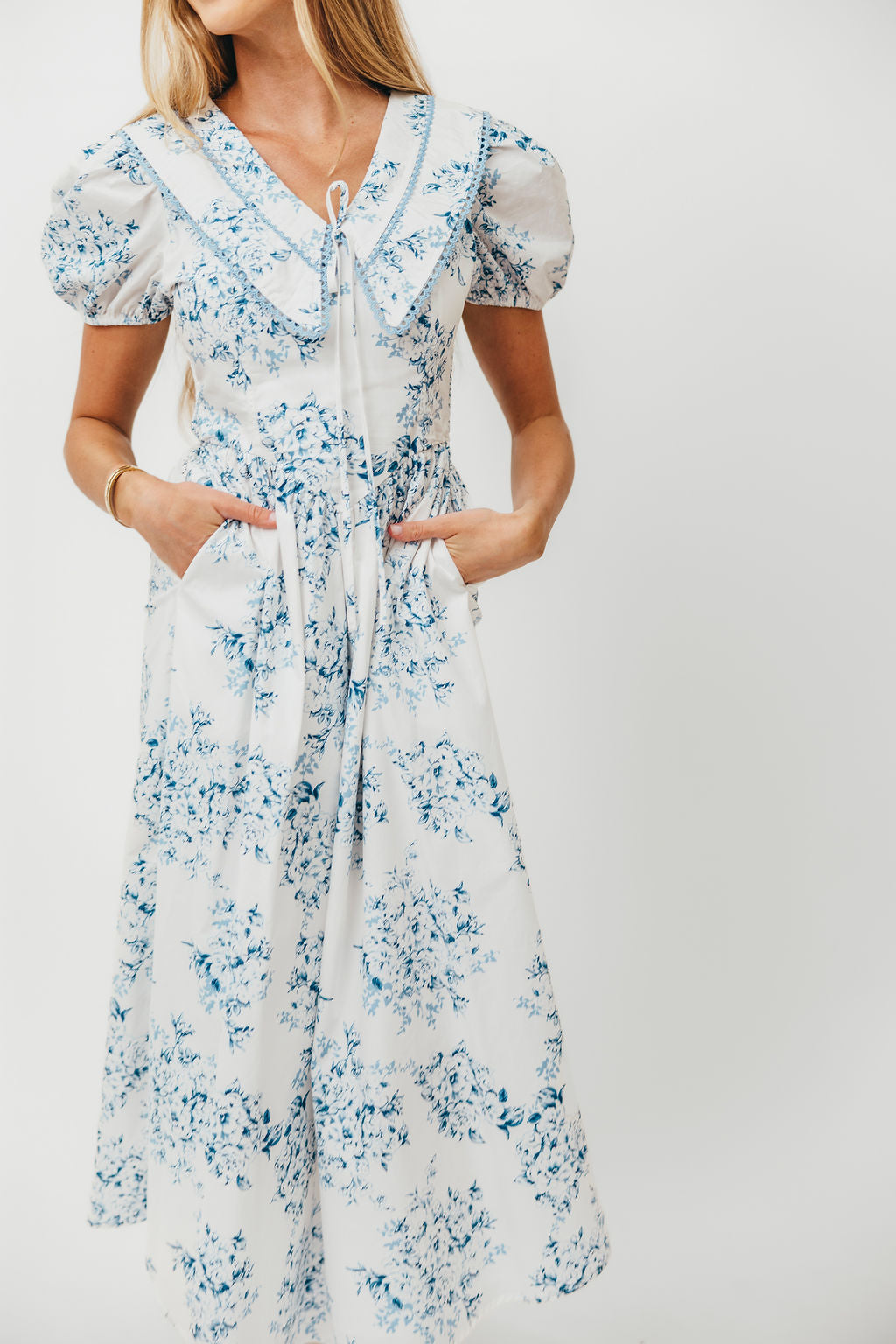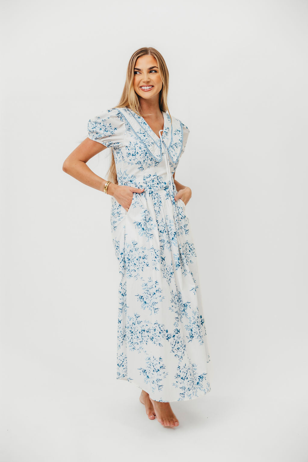 Aisha Floral Sailor Collar Maxi Dress in Blue
