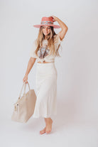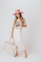 May Satin Midi Skirt in Bone