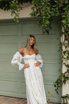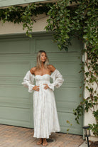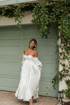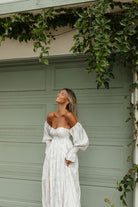 This luxurious and ethereal maxi dress will have you looking like a goddess this season! Meet the Dear Skye gown, a new addition to our Dress Shoppe and one that's already a crowd favorite. Crafted from over seven yards of premium fabric, this dress offers a gorgeous neckline and renaissance-style sleeves, with a sweeping skirt that flatters every body type. This gown is the ideal choice for photos: family sessions, maternity and newborn photo ops, and even christenings and gender reveals!