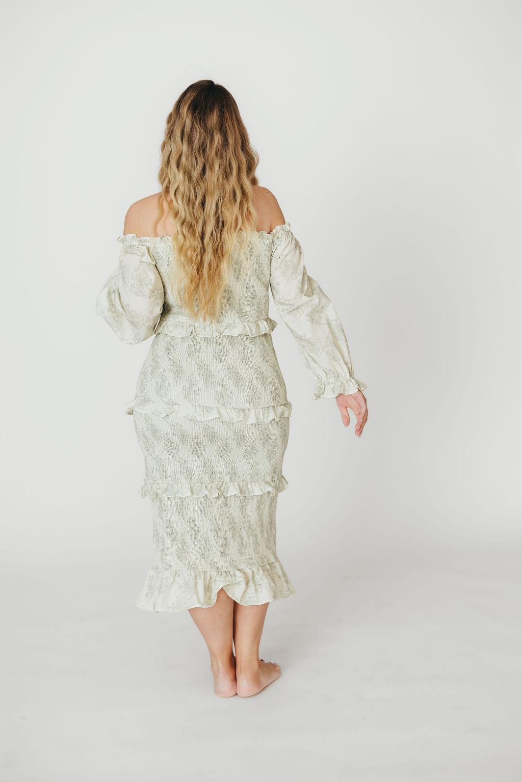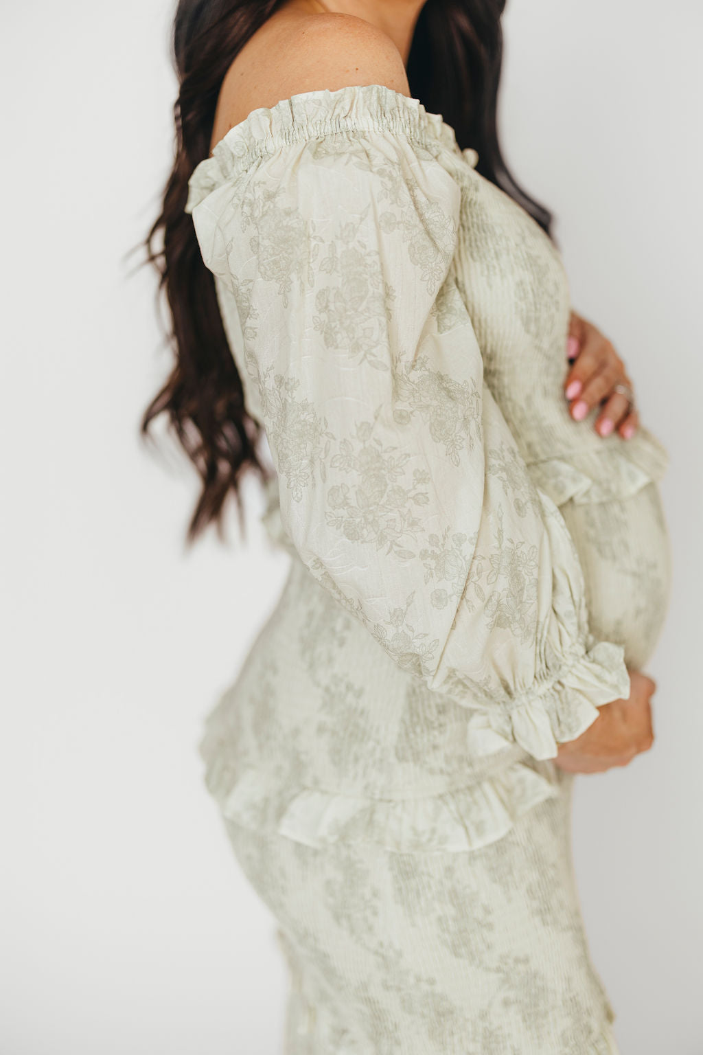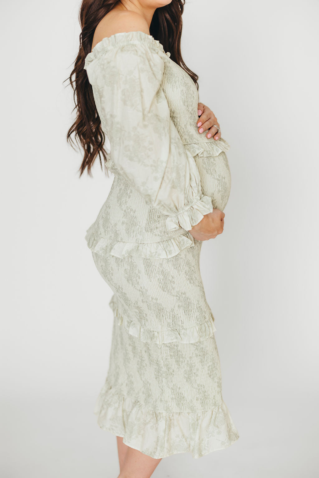 Daphne Long Sleeve Maxi Dress in Light Beige/White Floral - Bump Friendly & Inclusive Sizing (XS-3XL)