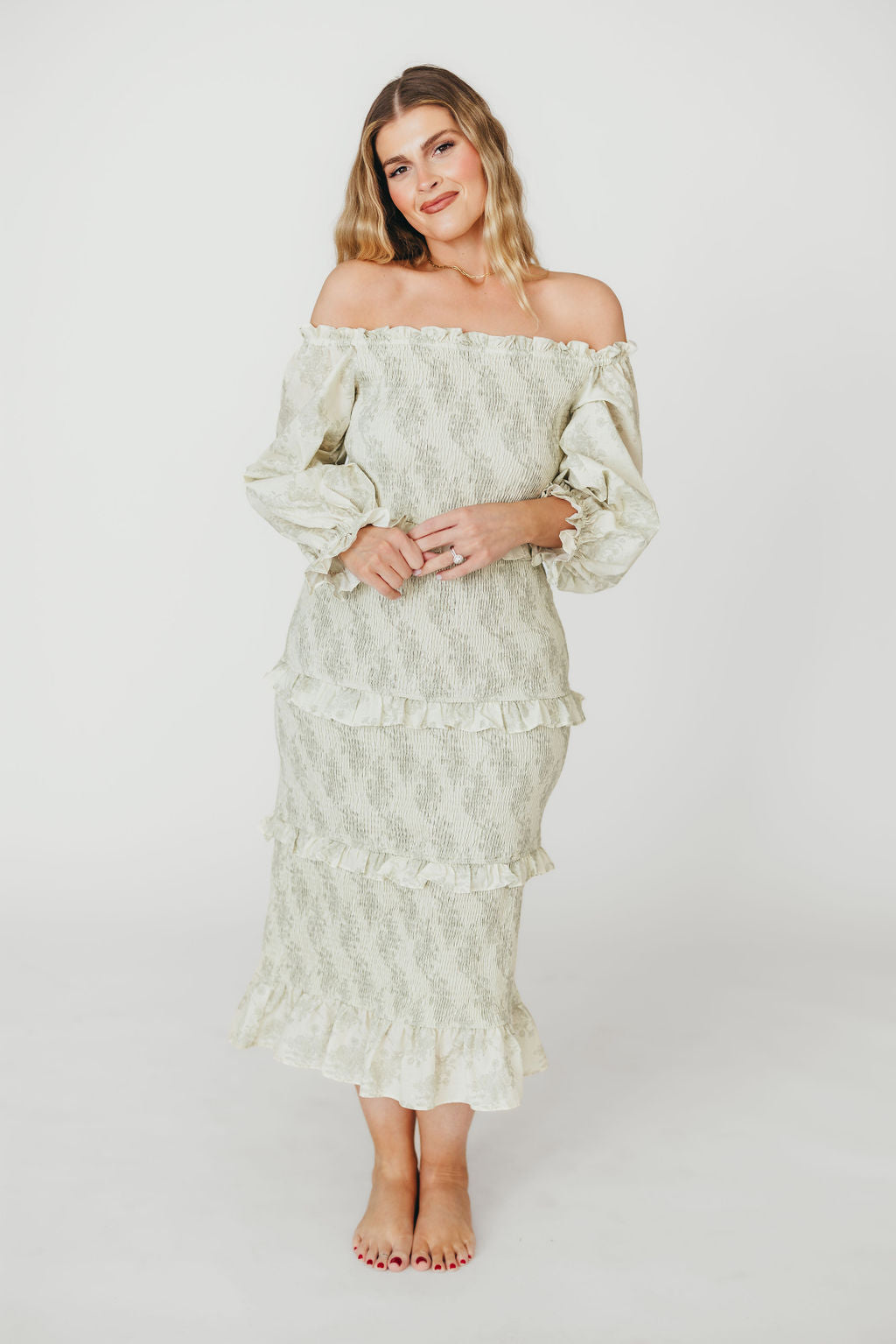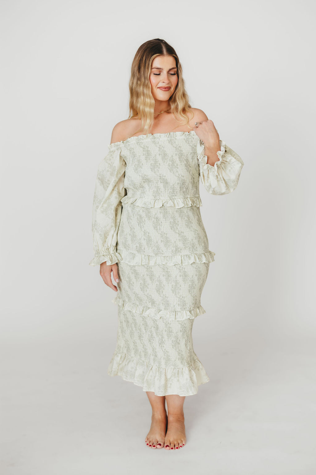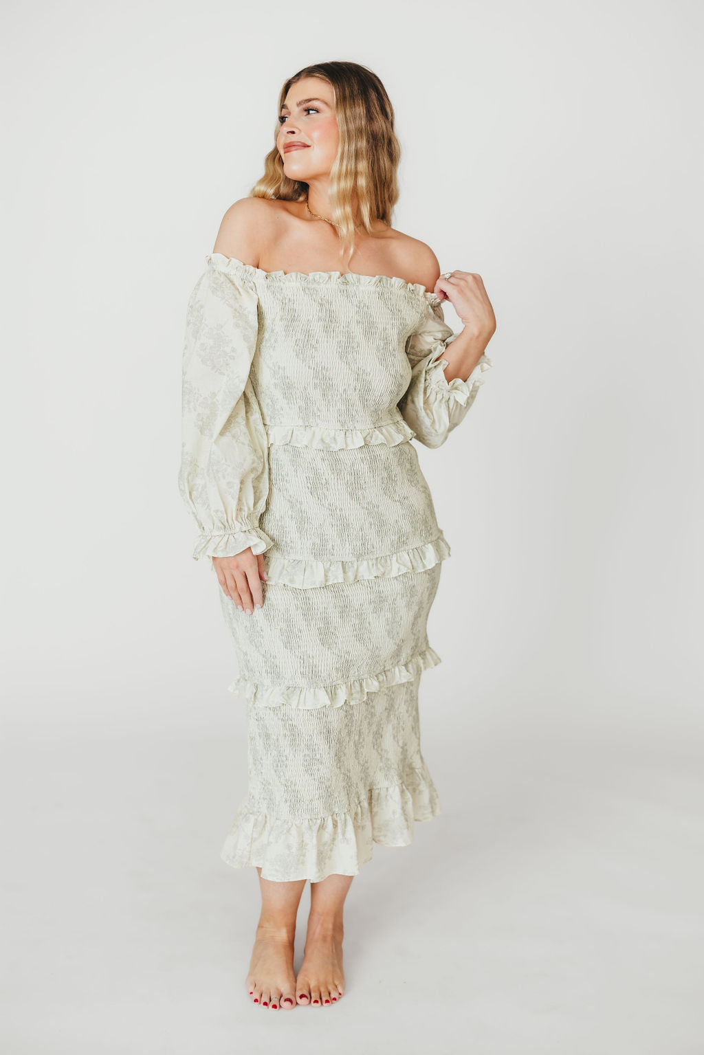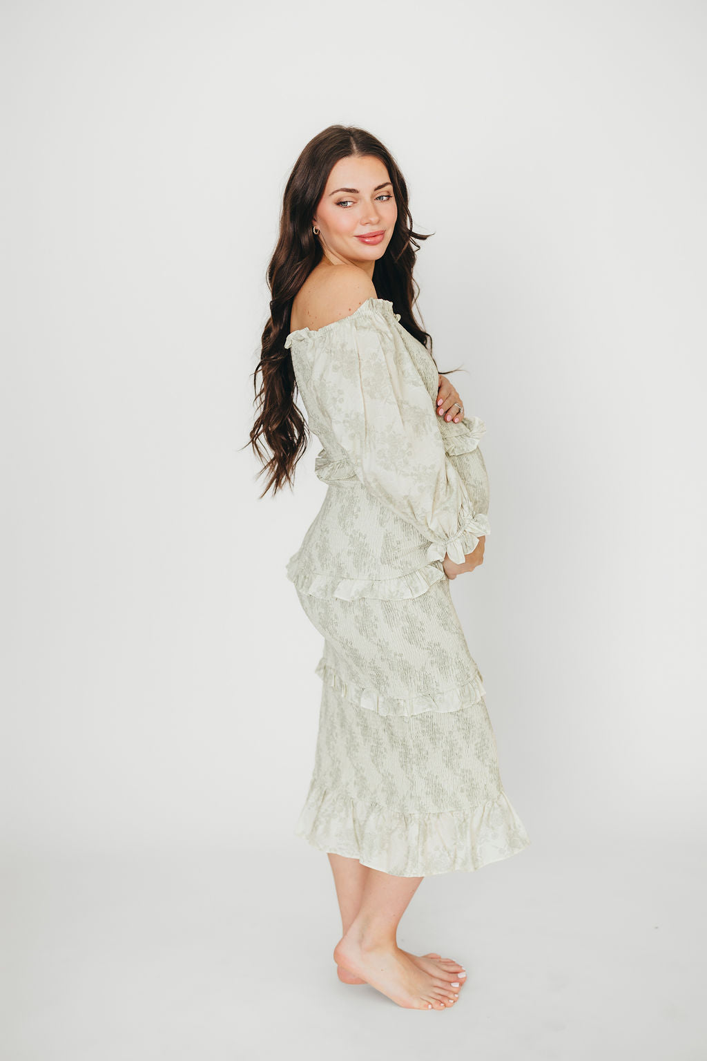 Daphne Long Sleeve Maxi Dress in Light Beige/White Floral - Bump Friendly & Inclusive Sizing (XS-3XL)