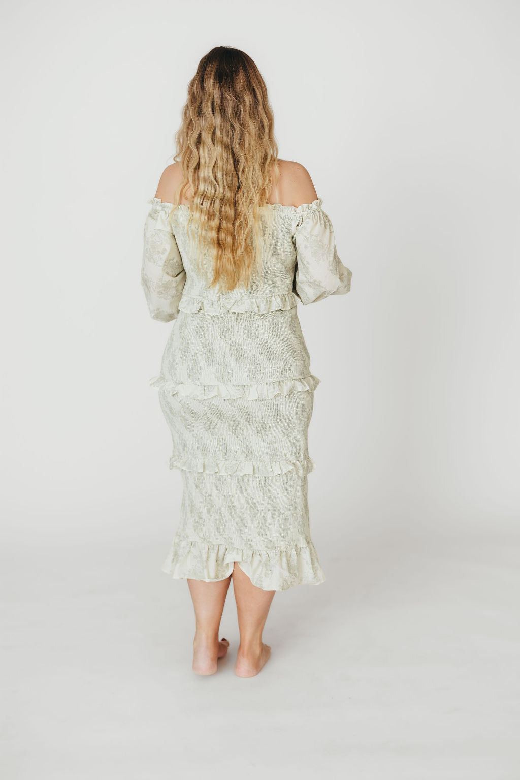 Cameron Stretchy Midi Dress with Ruffles in Beige/Blue *Final-Sale*