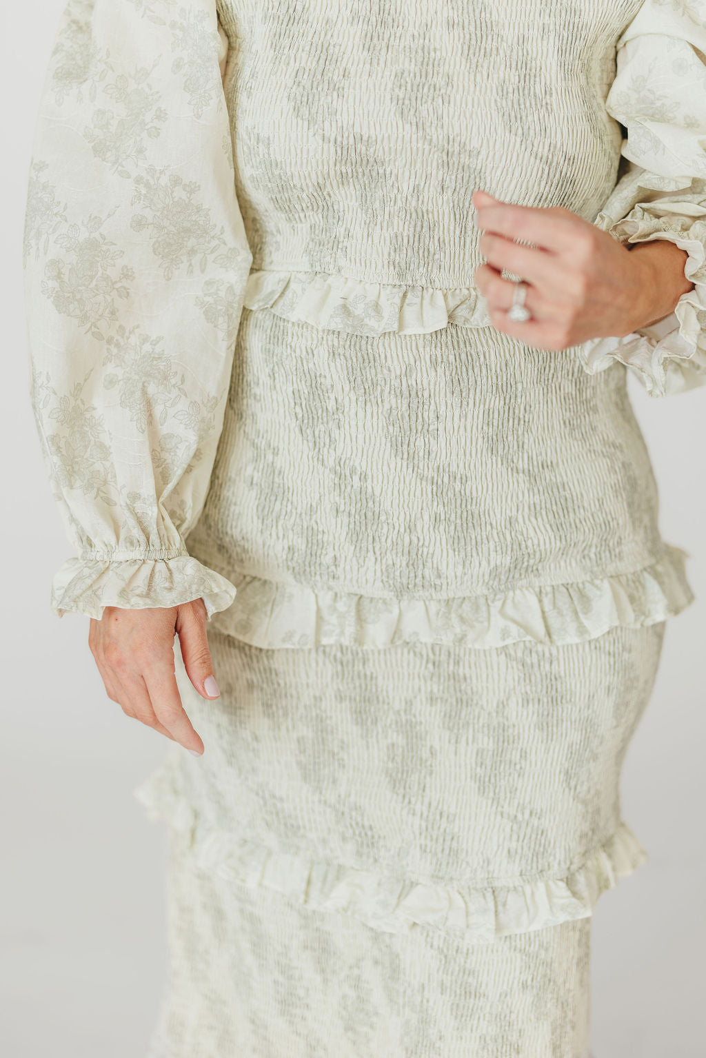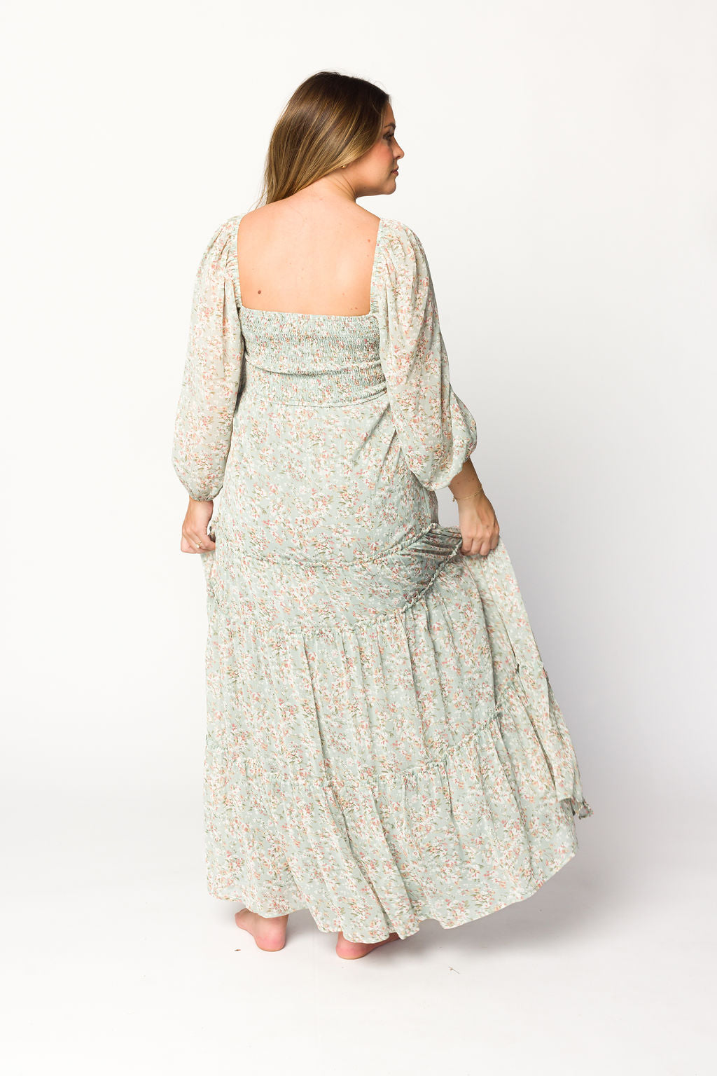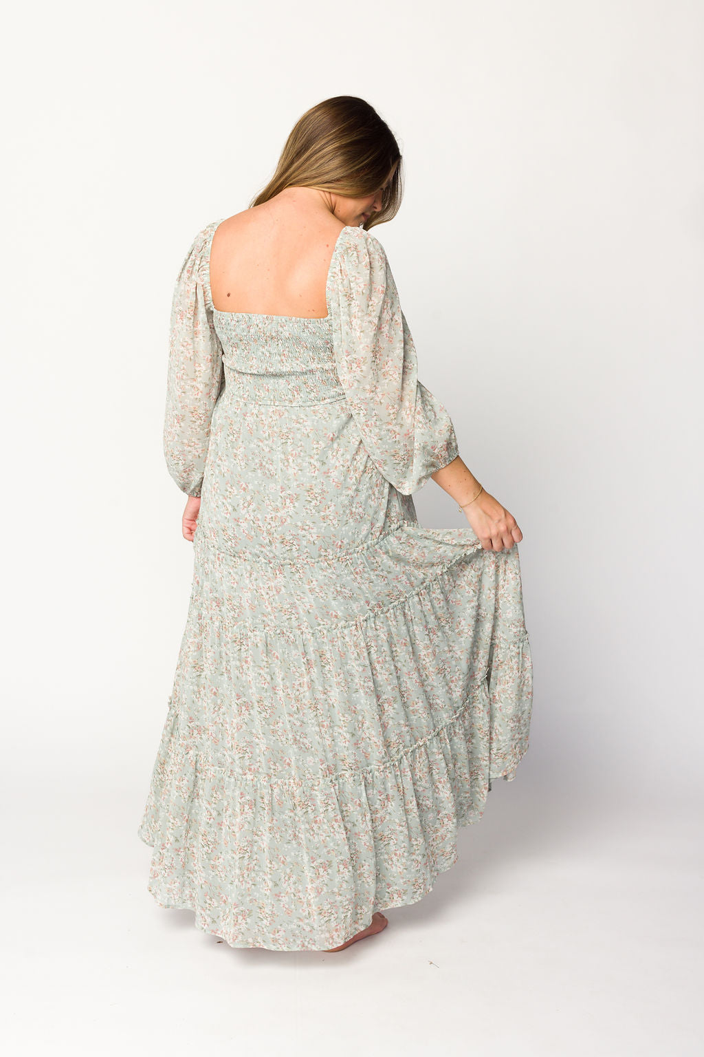 Daphne Long Sleeve Maxi Dress in Sage/Pink/Ivory Floral - Bump Friendly & Inclusive Sizing (XS-3XL)