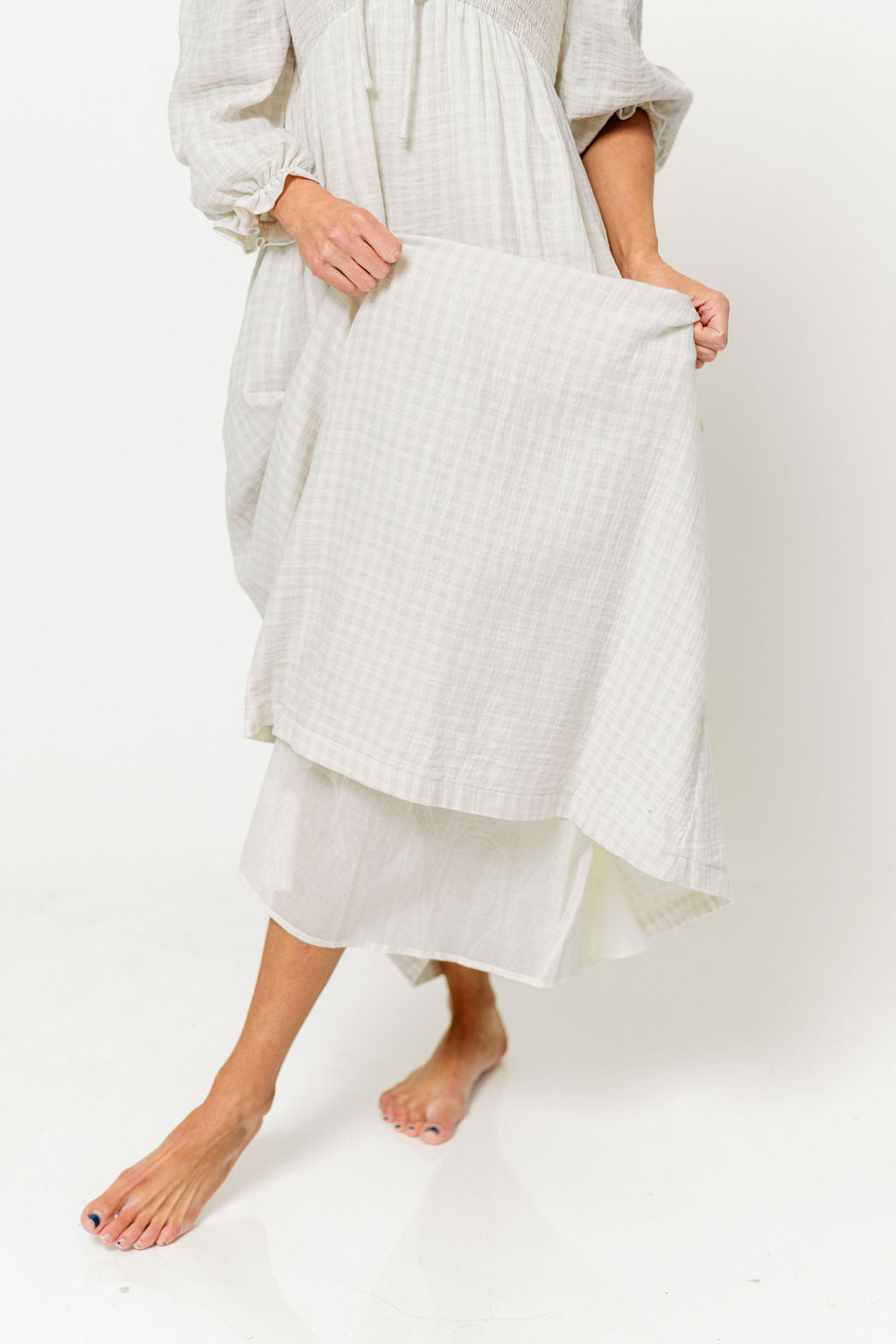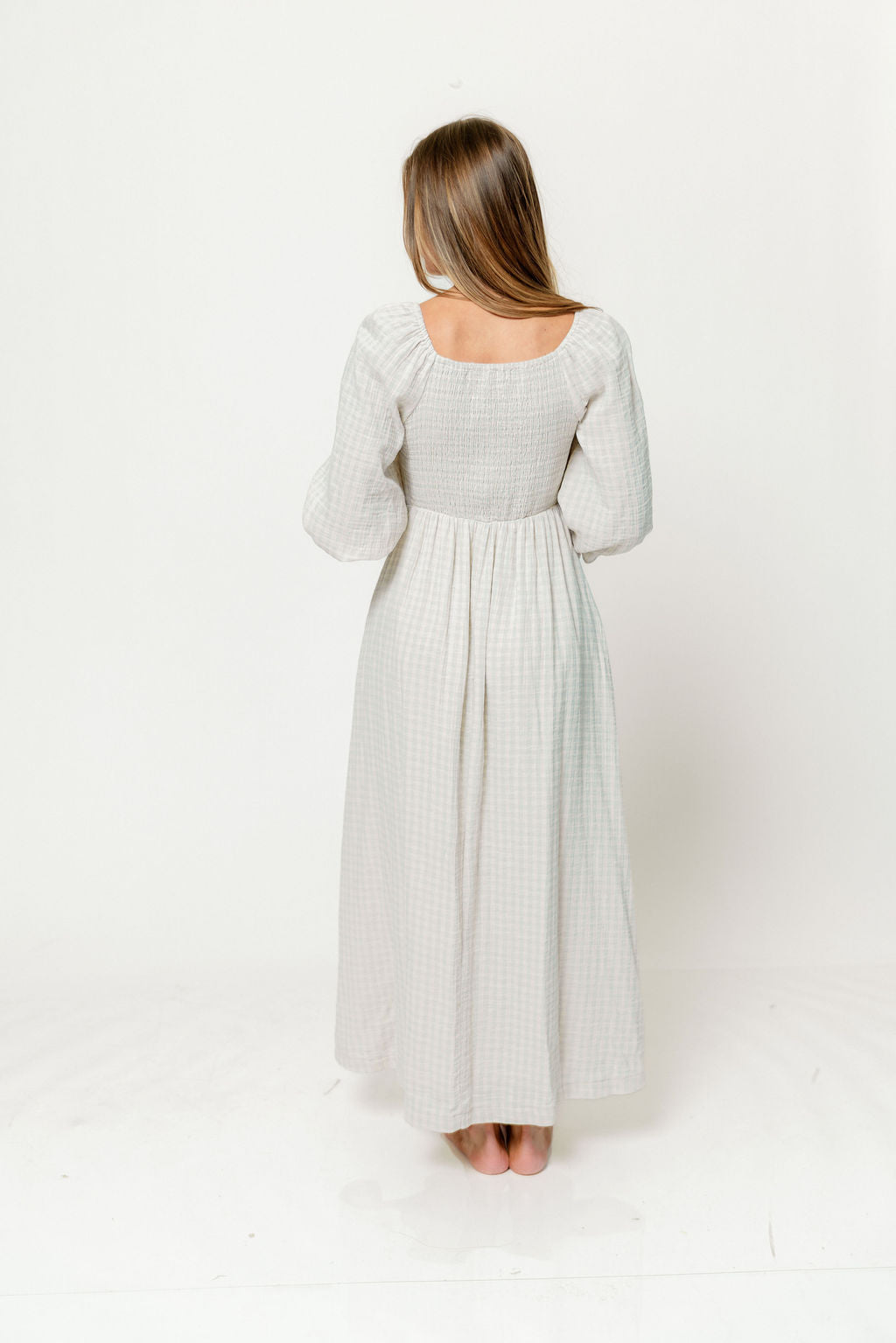 Cecilia 100% Cotton Smocked Maxi Dress in Baby Blue Plaid (Lined) - Bump Friendly