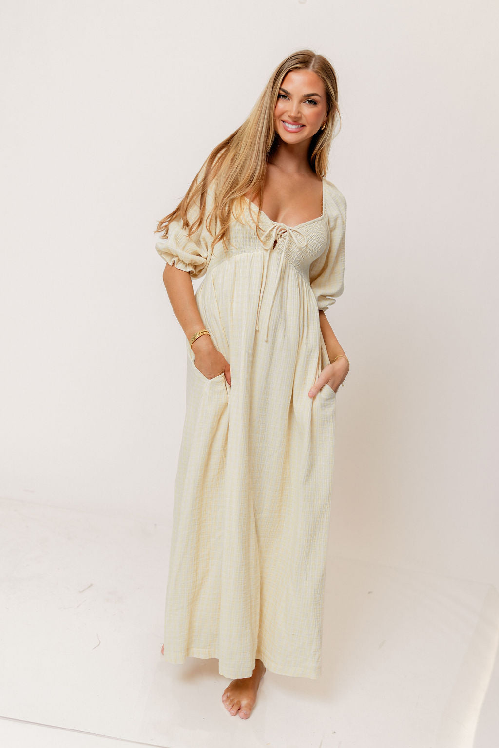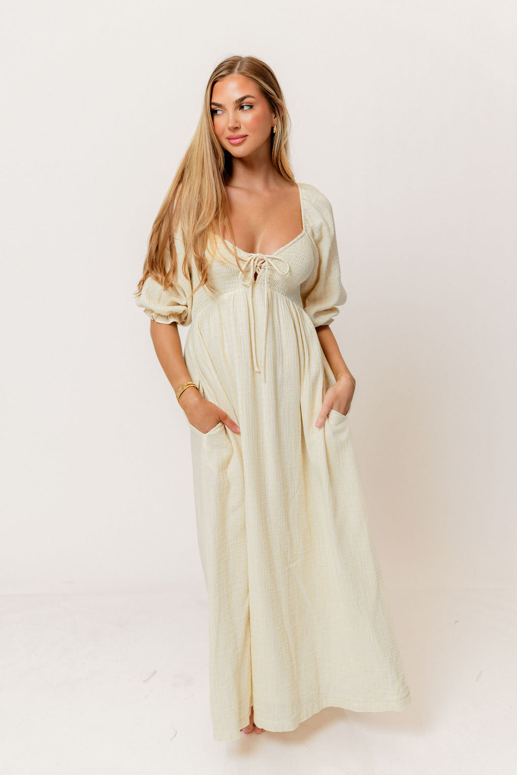 Cecilia 100% Cotton Smocked Maxi Dress in Custard Plaid (Lined) - Bump Friendly
