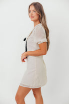 Add a touch of whimsy to your wardrobe with the new Dainty Bow Collared Mini Dress! This sweet little dress offers a vintage-style polka dot pattern, with a lapel collar and puffed short sleeves. It's a charming choice for any special occasion!