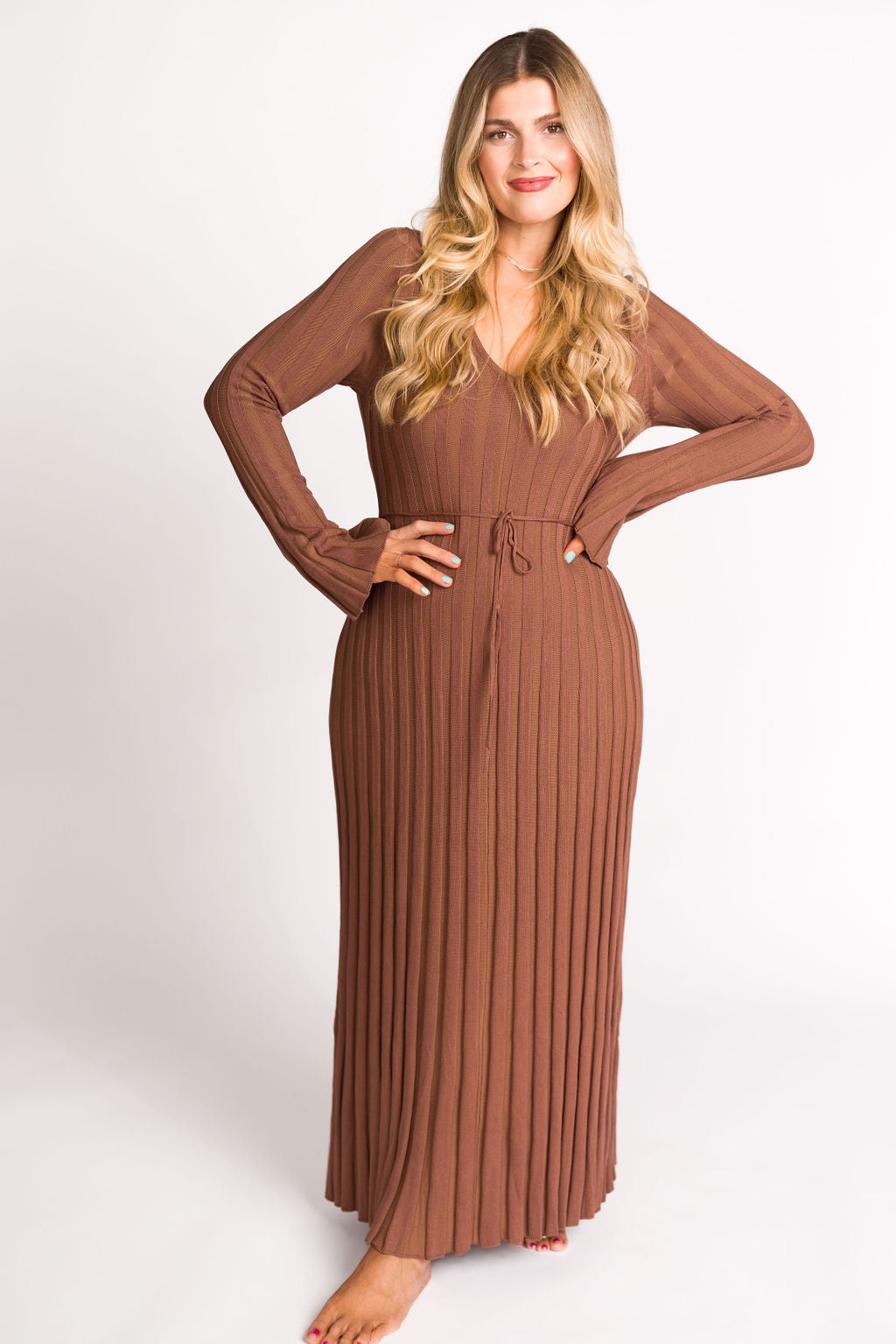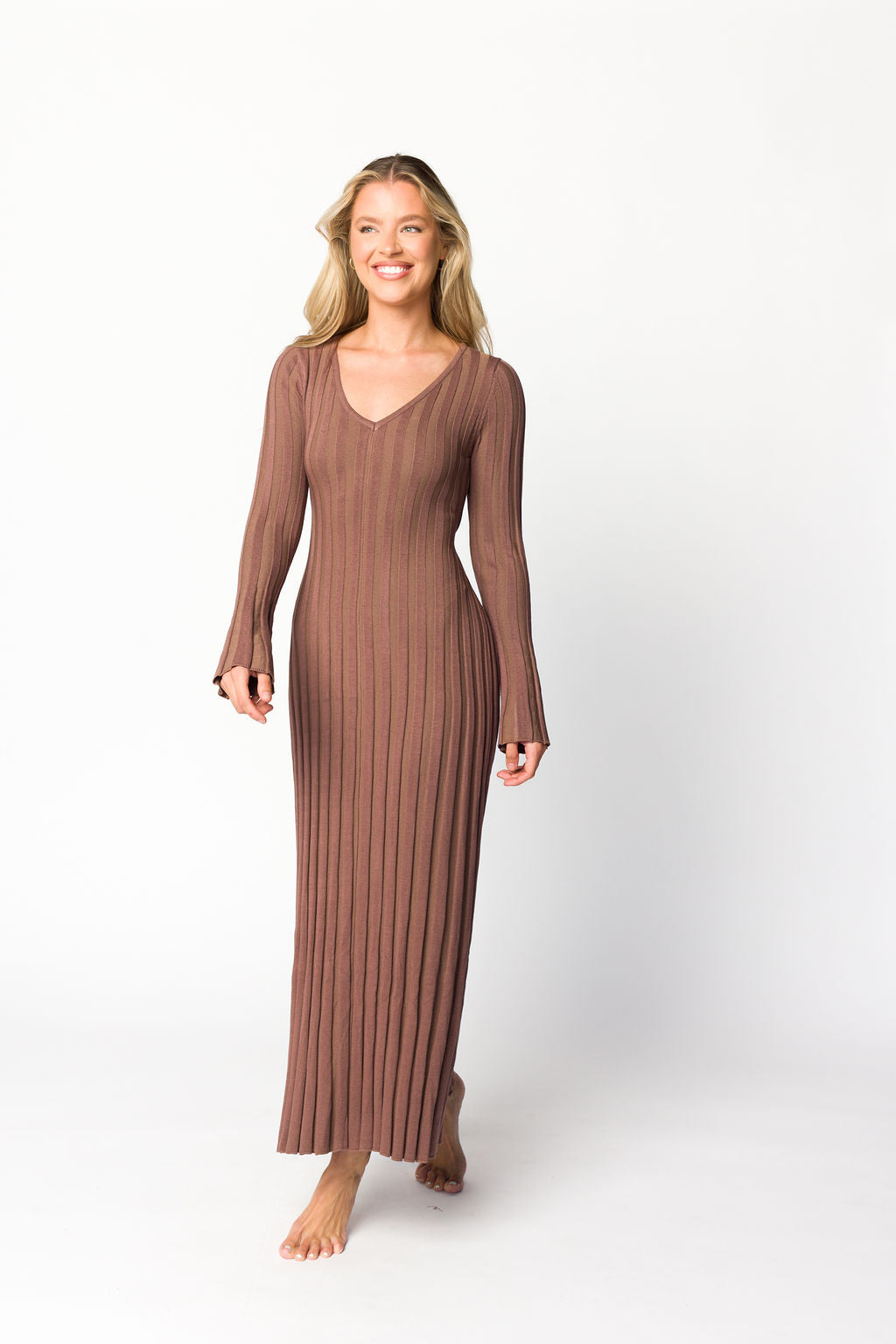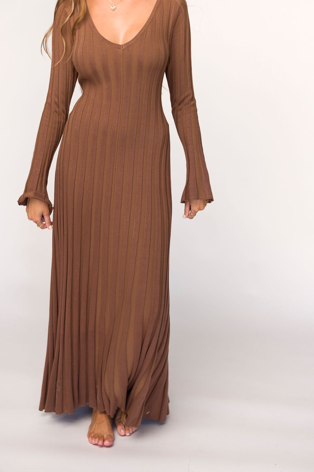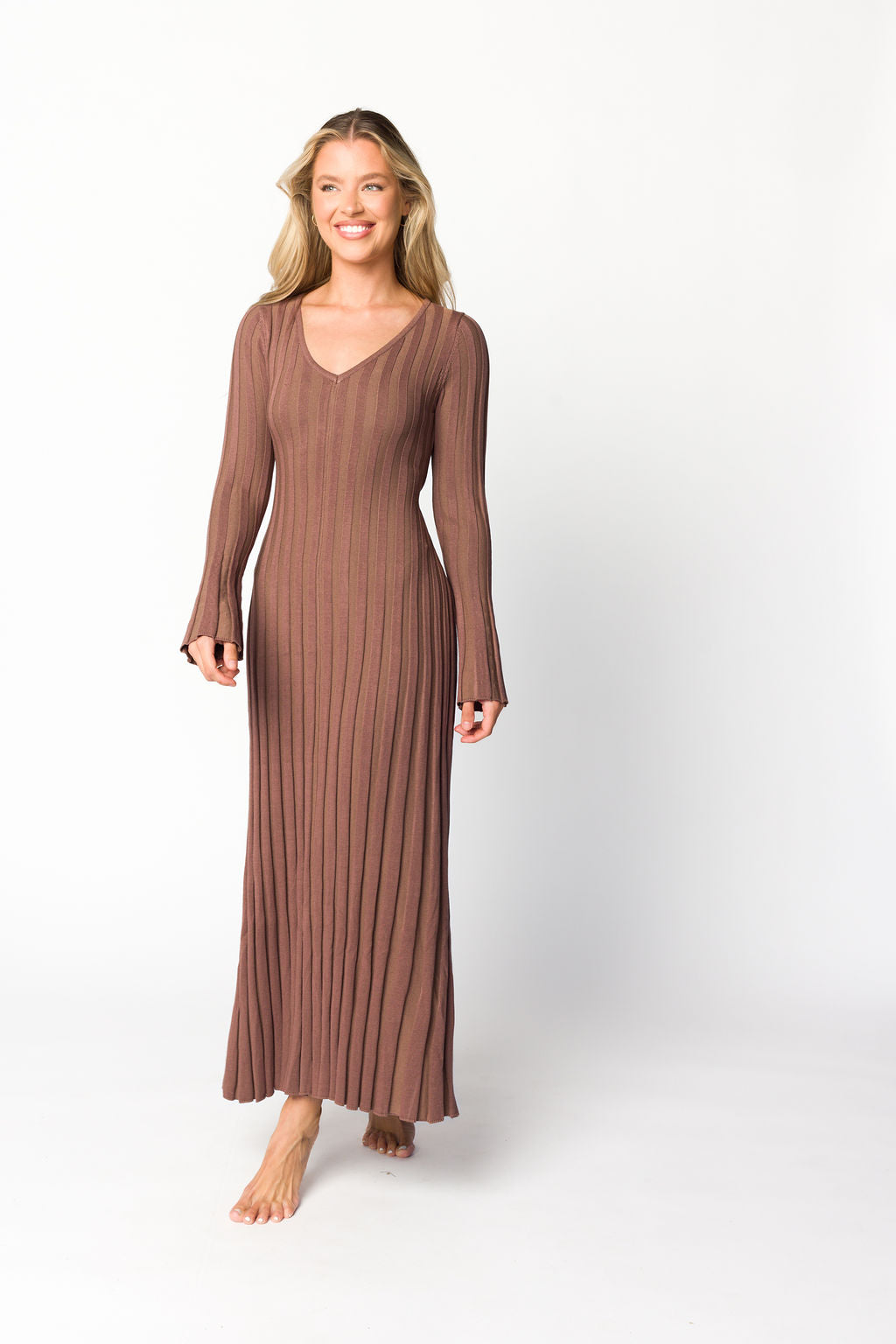 Hadley Long Sleeve V-Neck Knit Maxi Dress in Cocoa