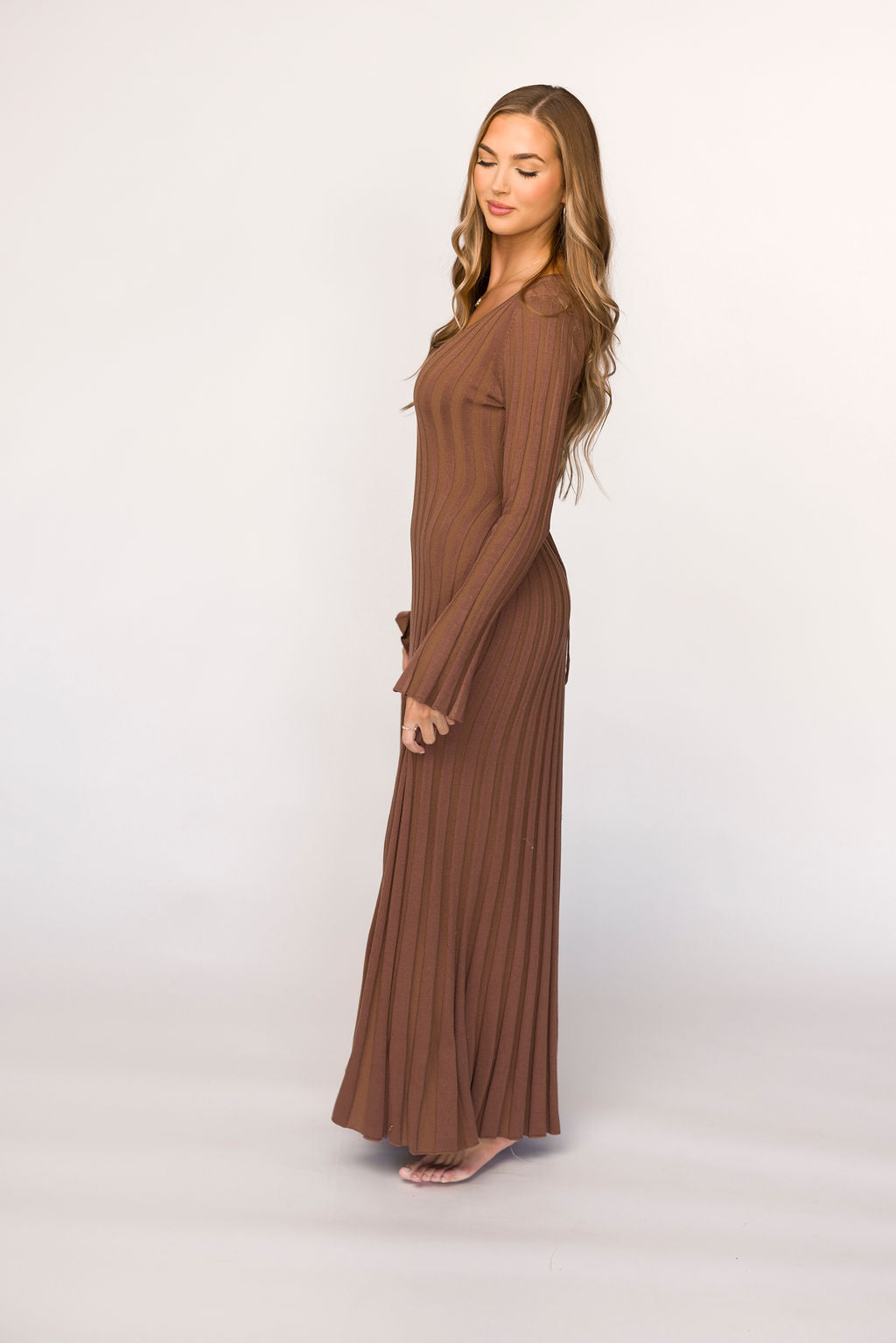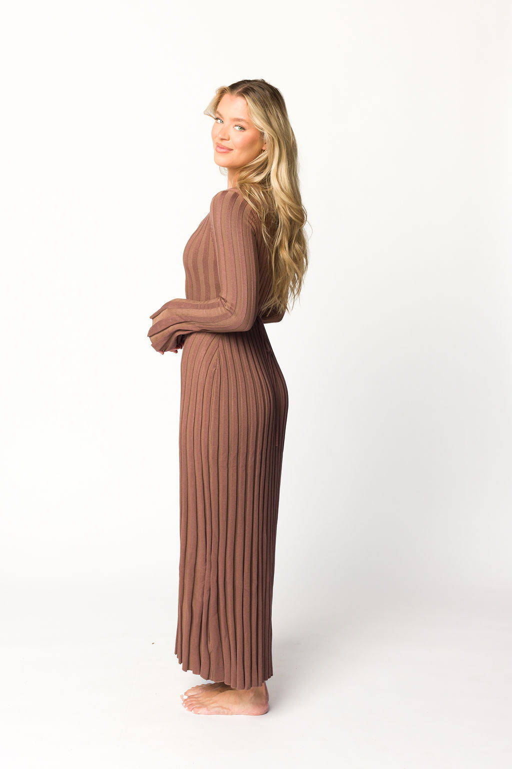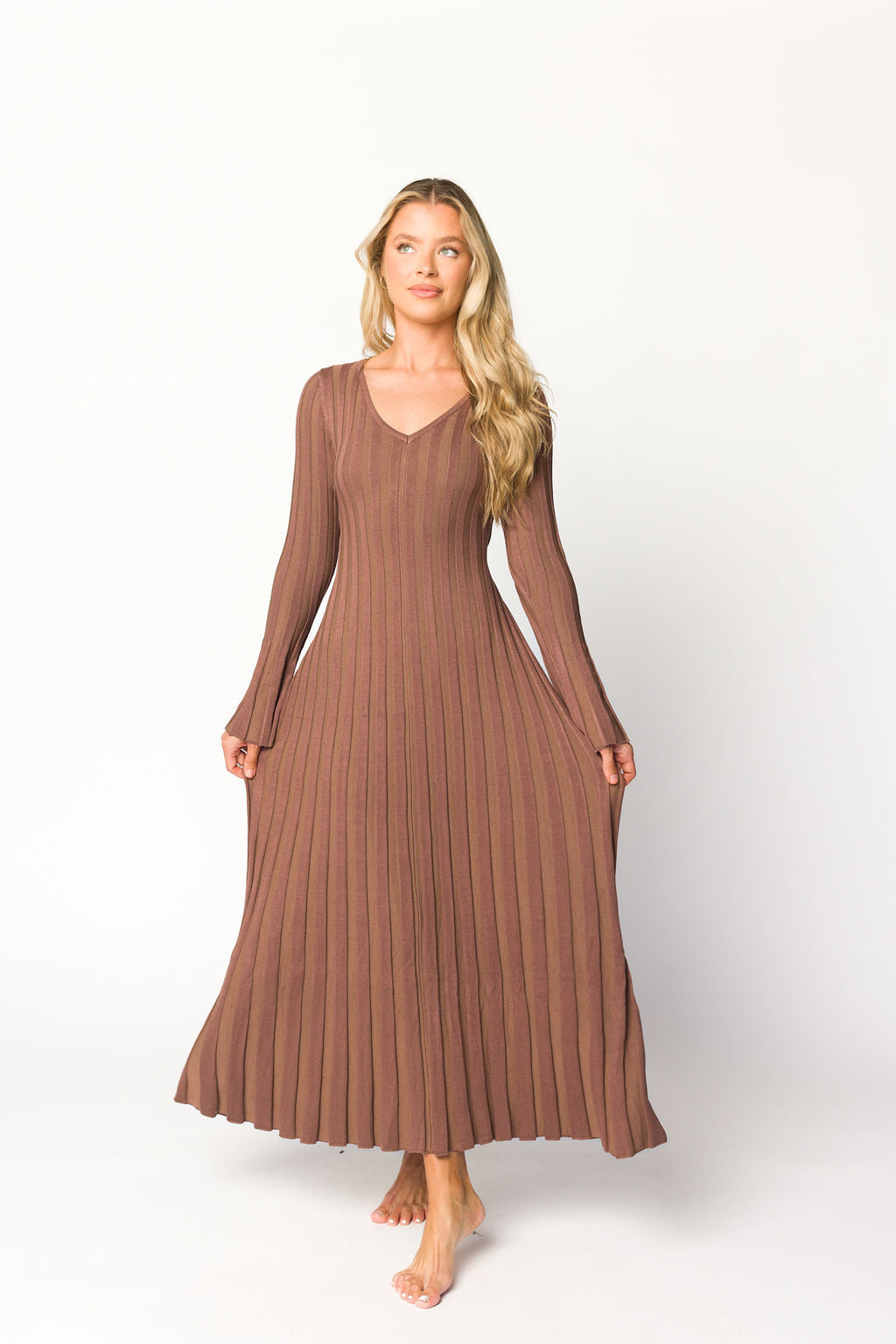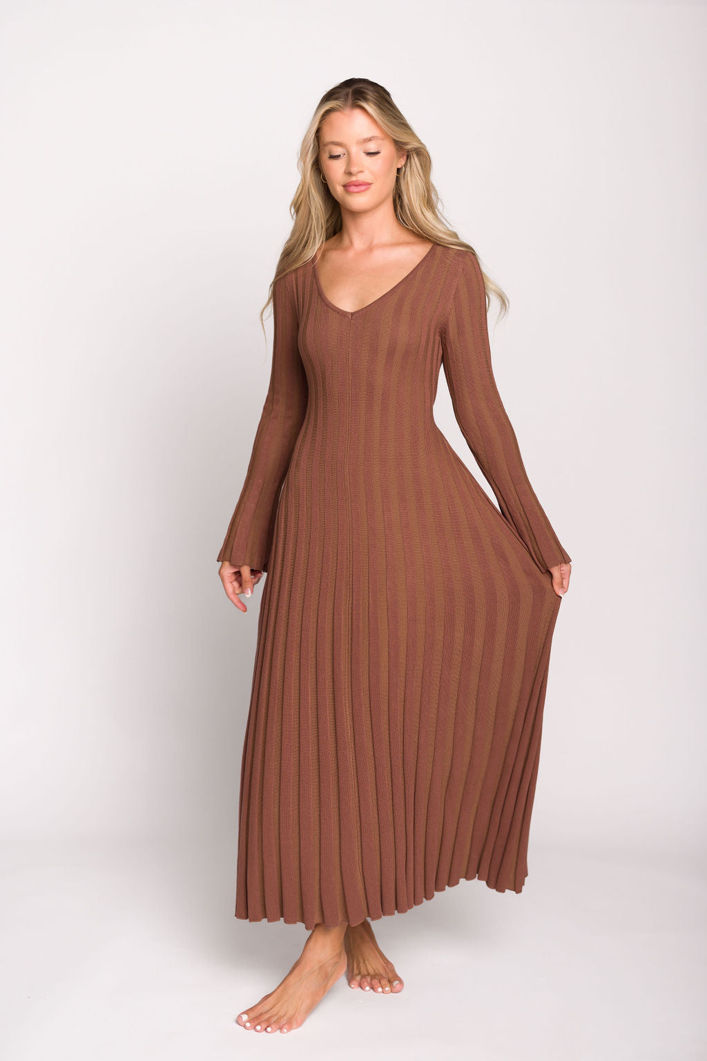 Hadley Long Sleeve V-Neck Knit Maxi Dress in Cocoa