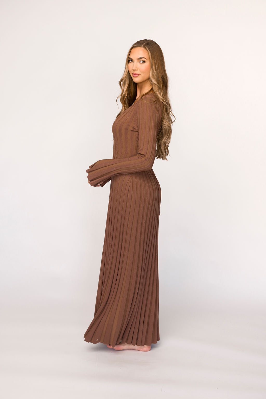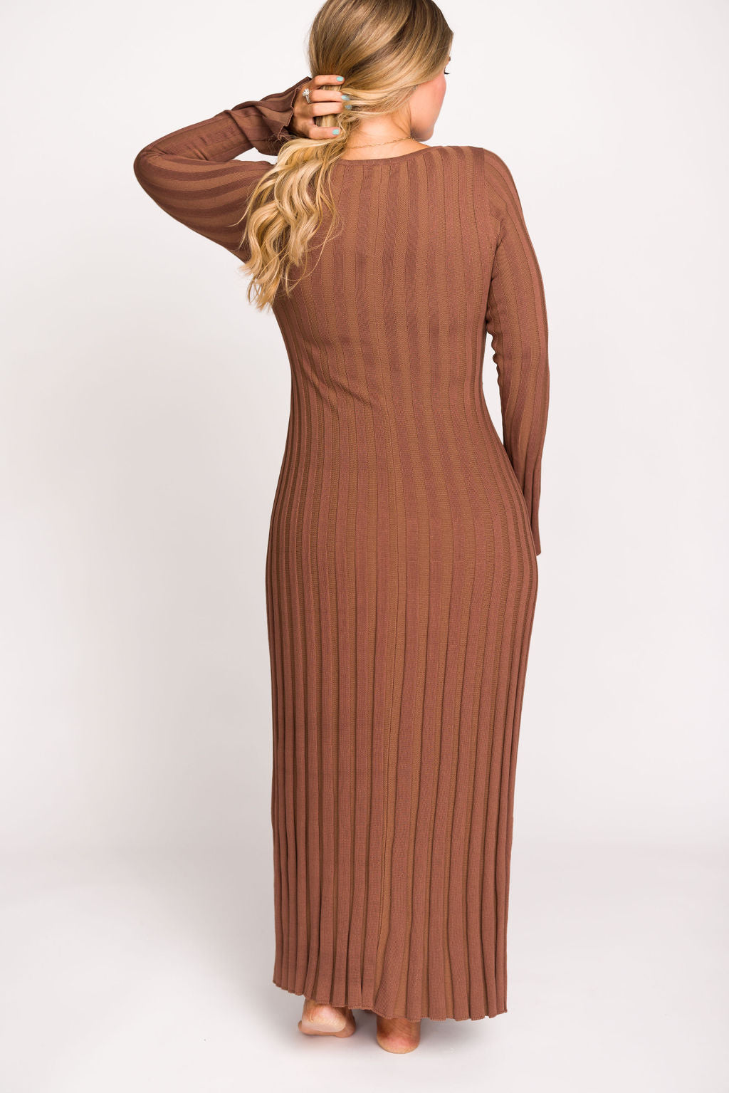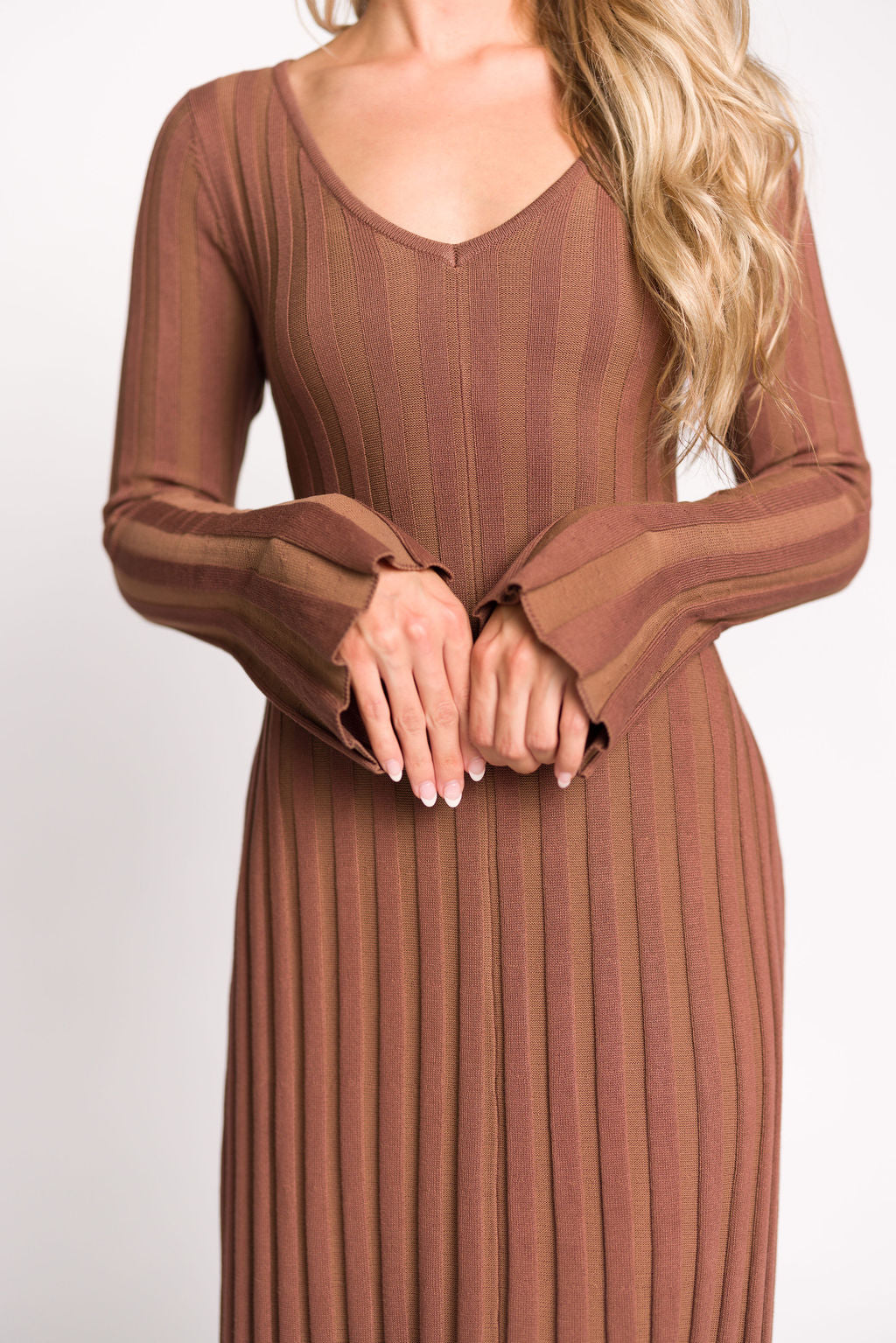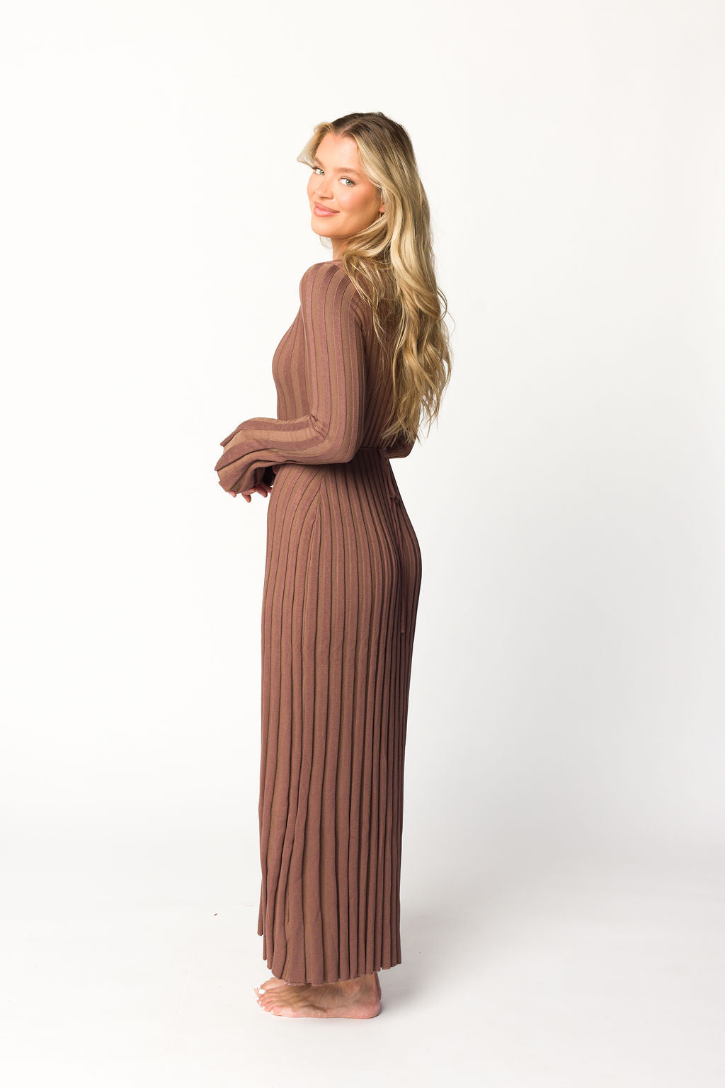 Hadley Long Sleeve V-Neck Knit Maxi Dress in Cocoa