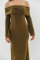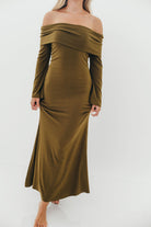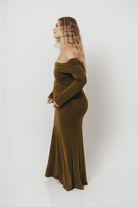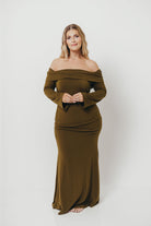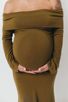 Monroe Maxi Dress with Long Sleeves in Olive Green- Bump Friendly