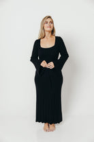 Elevate your wardrobe with the Rowan Maxi Dress! This new knit gown features a refined square neckline and a flowing silhouette that effortlessly combines comfort with elegance. Its soft neutral hue adds a timeless touch, making it perfect for sophisticated occasions or relaxed gatherings. Experience understated luxury in a dress designed to move gracefully with you.
