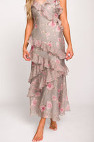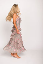 Amelia Ruffle Maxi Dress in Grey/Pink Floral *Final-Sale*