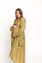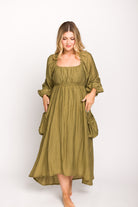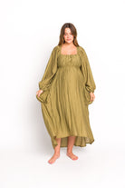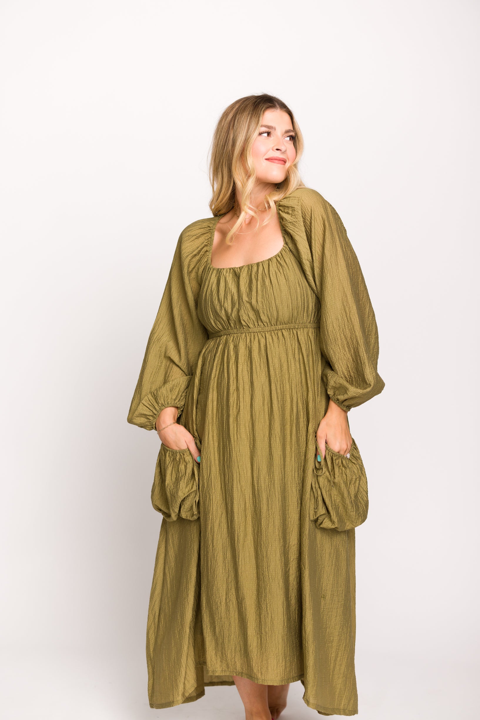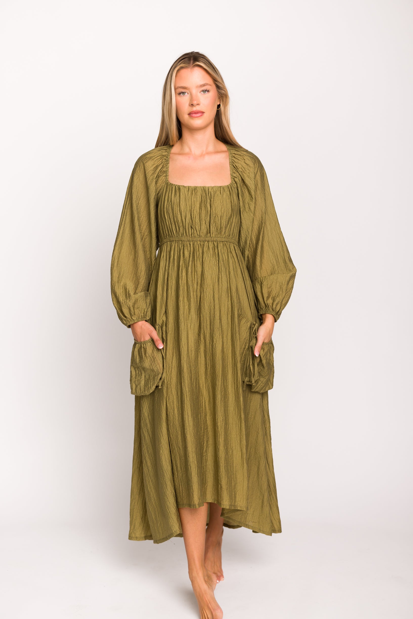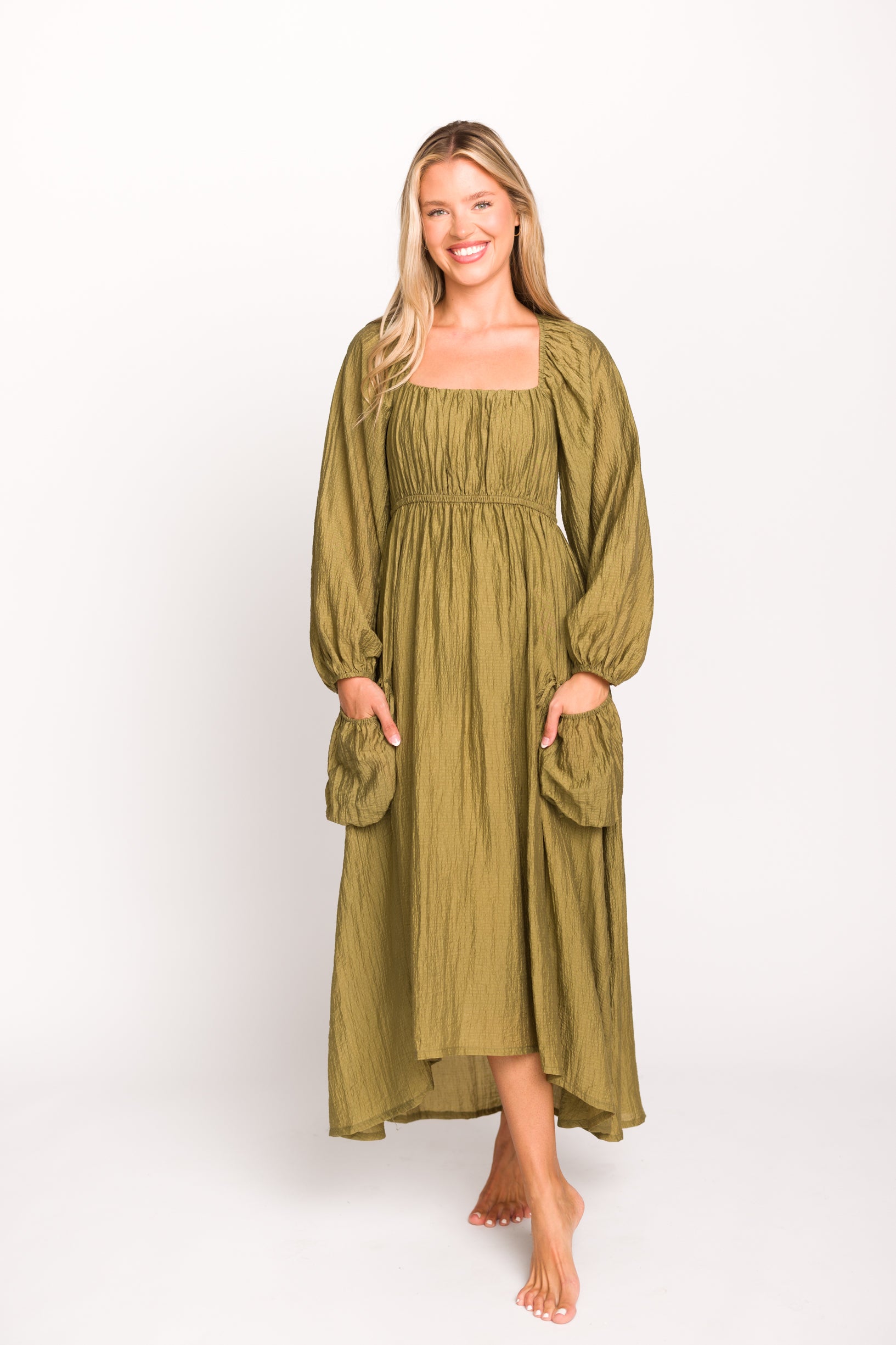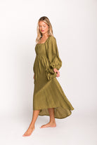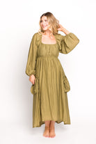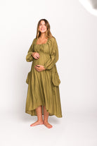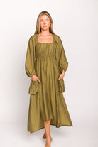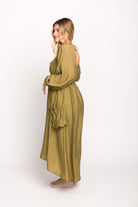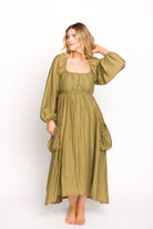 Ariana Long Sleeved Maxi Dress with Slouchy Pocket in Olive *Final-Sale*