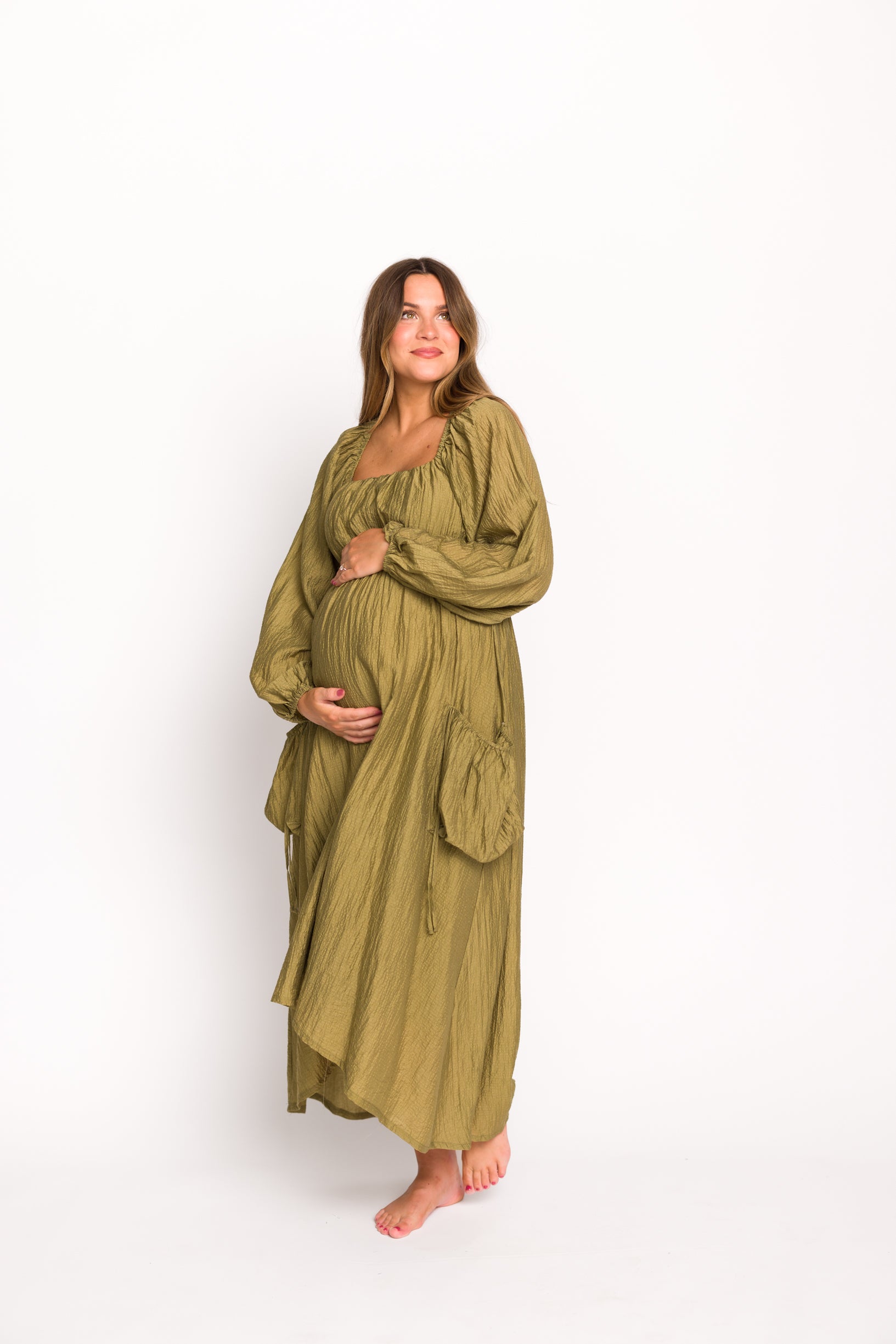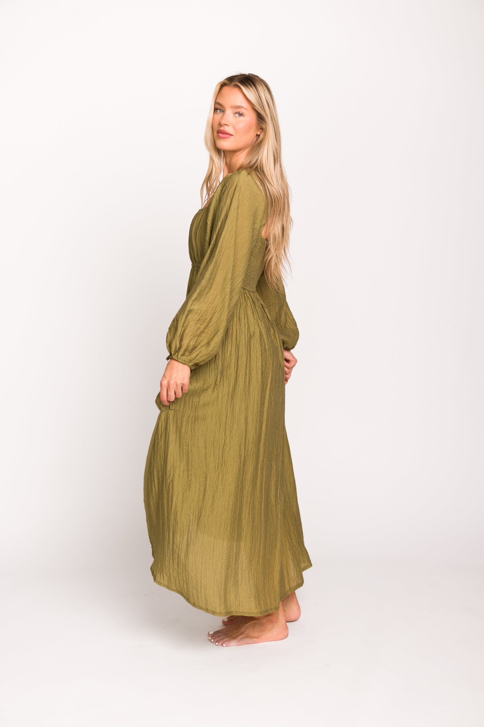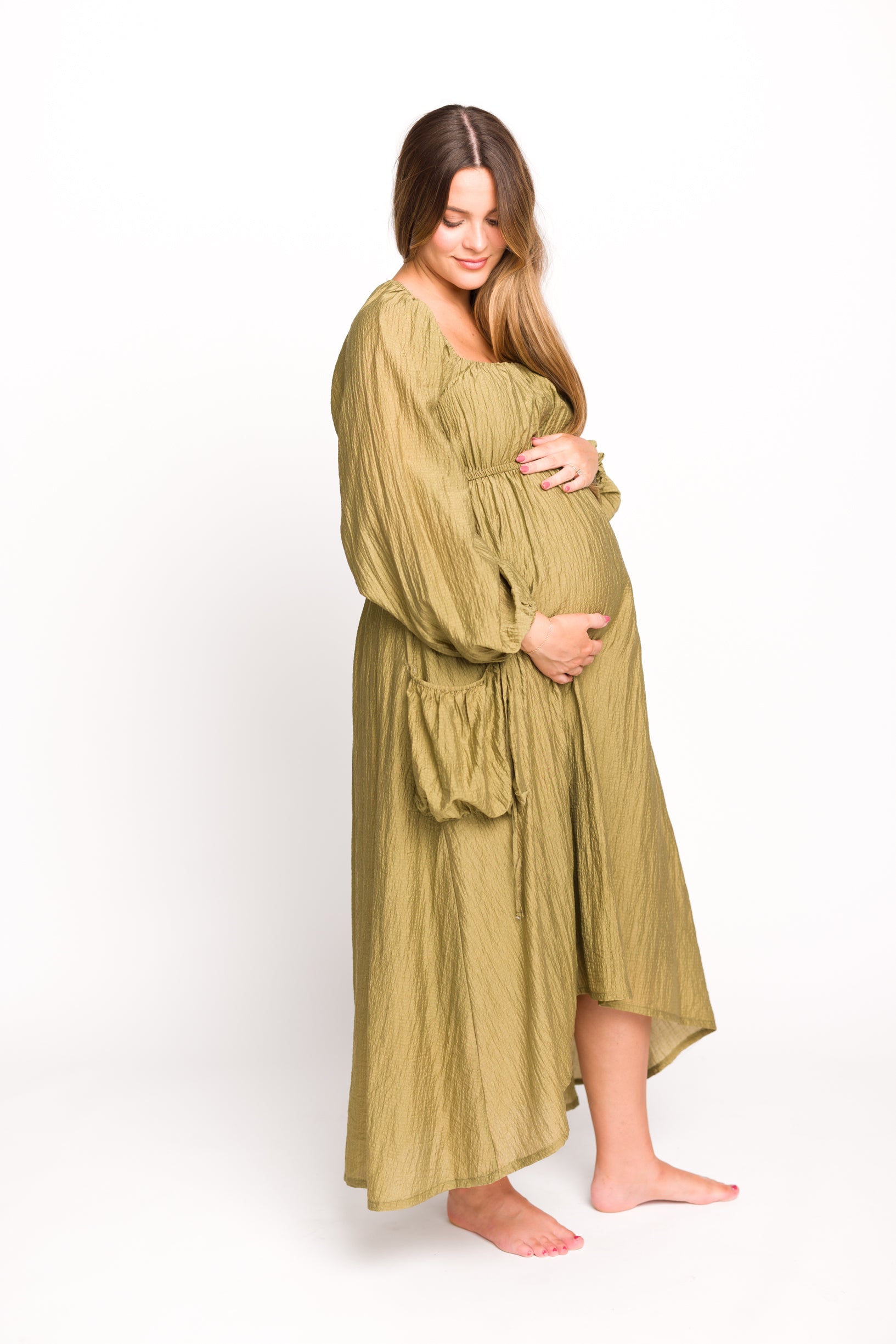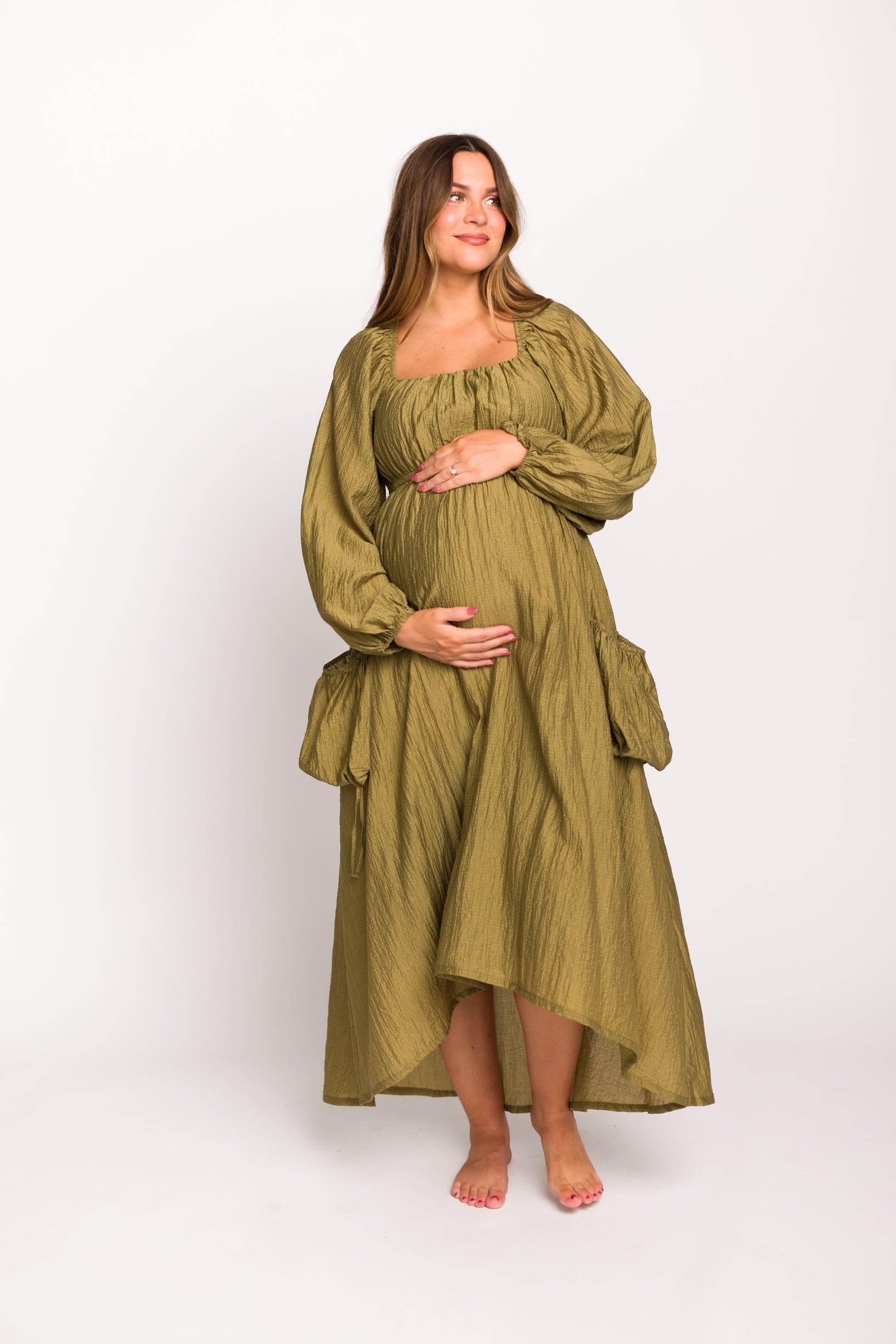 Ariana Long Sleeved Maxi Dress with Slouchy Pocket in Olive *Final-Sale*