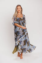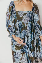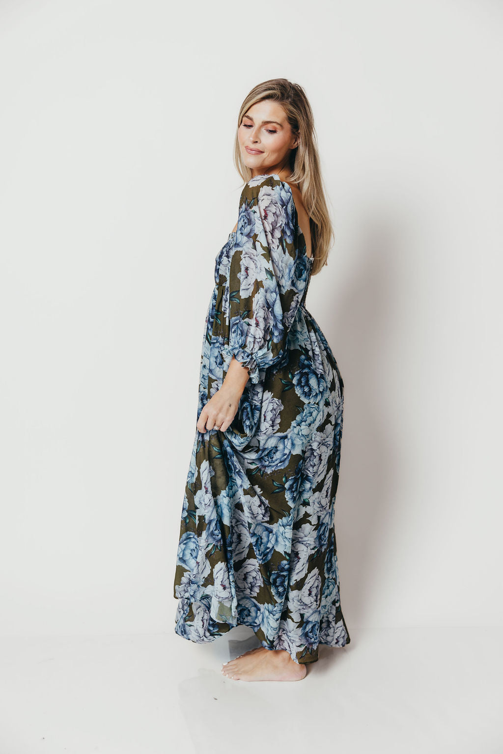 Mona Maxi Dress in Olive/Blue Floral - Bump Friendly