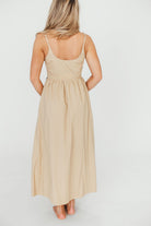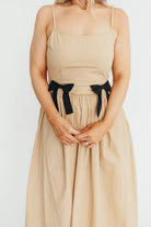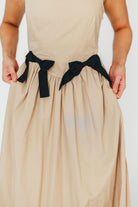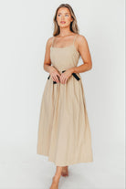 Celeste Square Neck Midi Dress with Bow Detail in Khaki *Final-Sale*