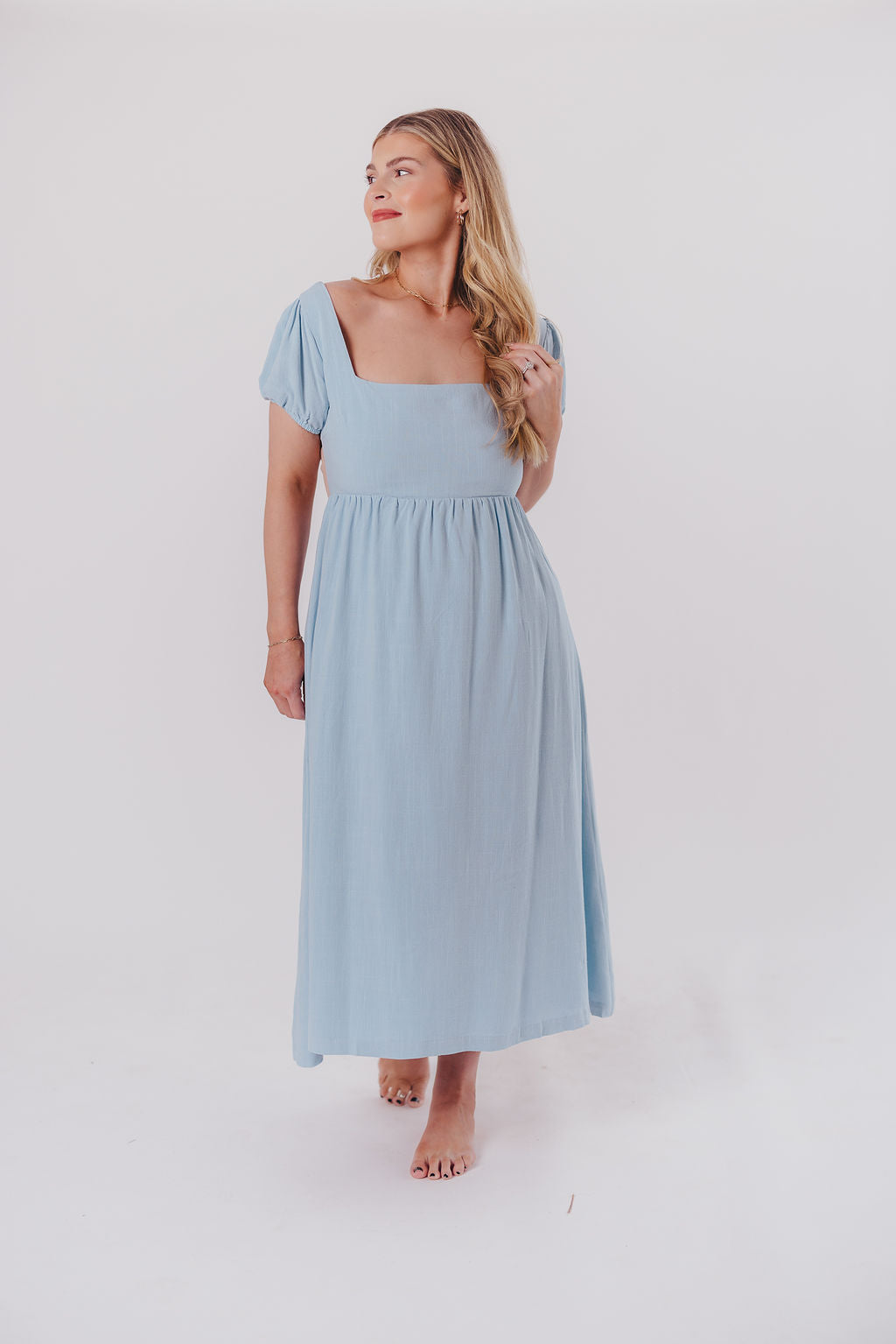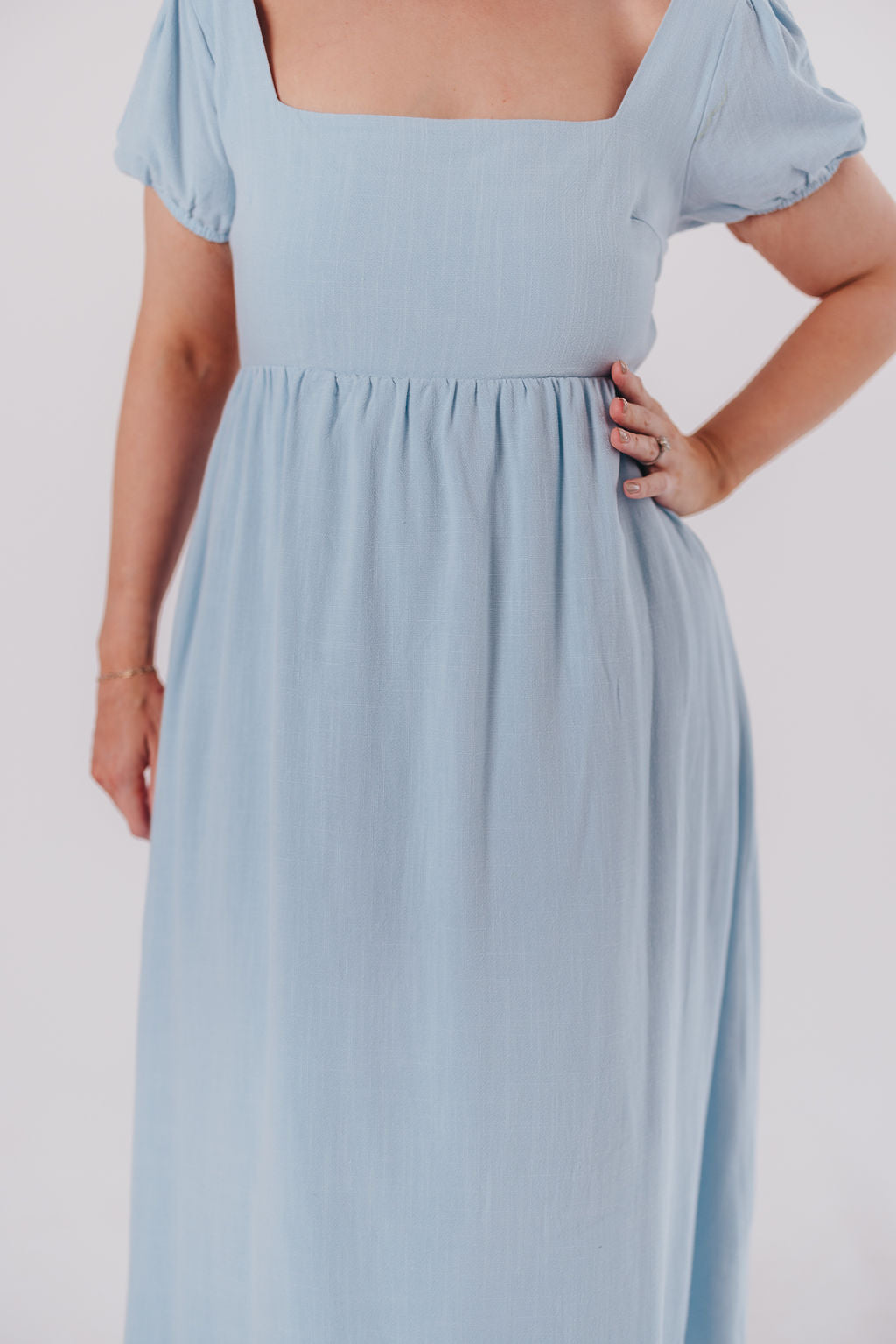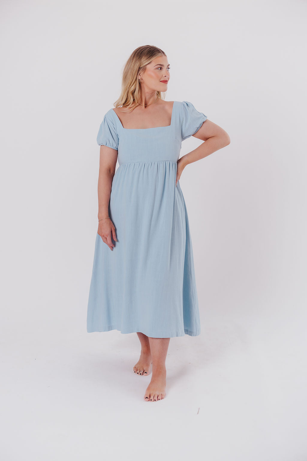 Ainsley Square Neck Midi Dress with Puffed Sleeves in Baby Blue - Bump Friendly *2/25 PRE-ORDER*