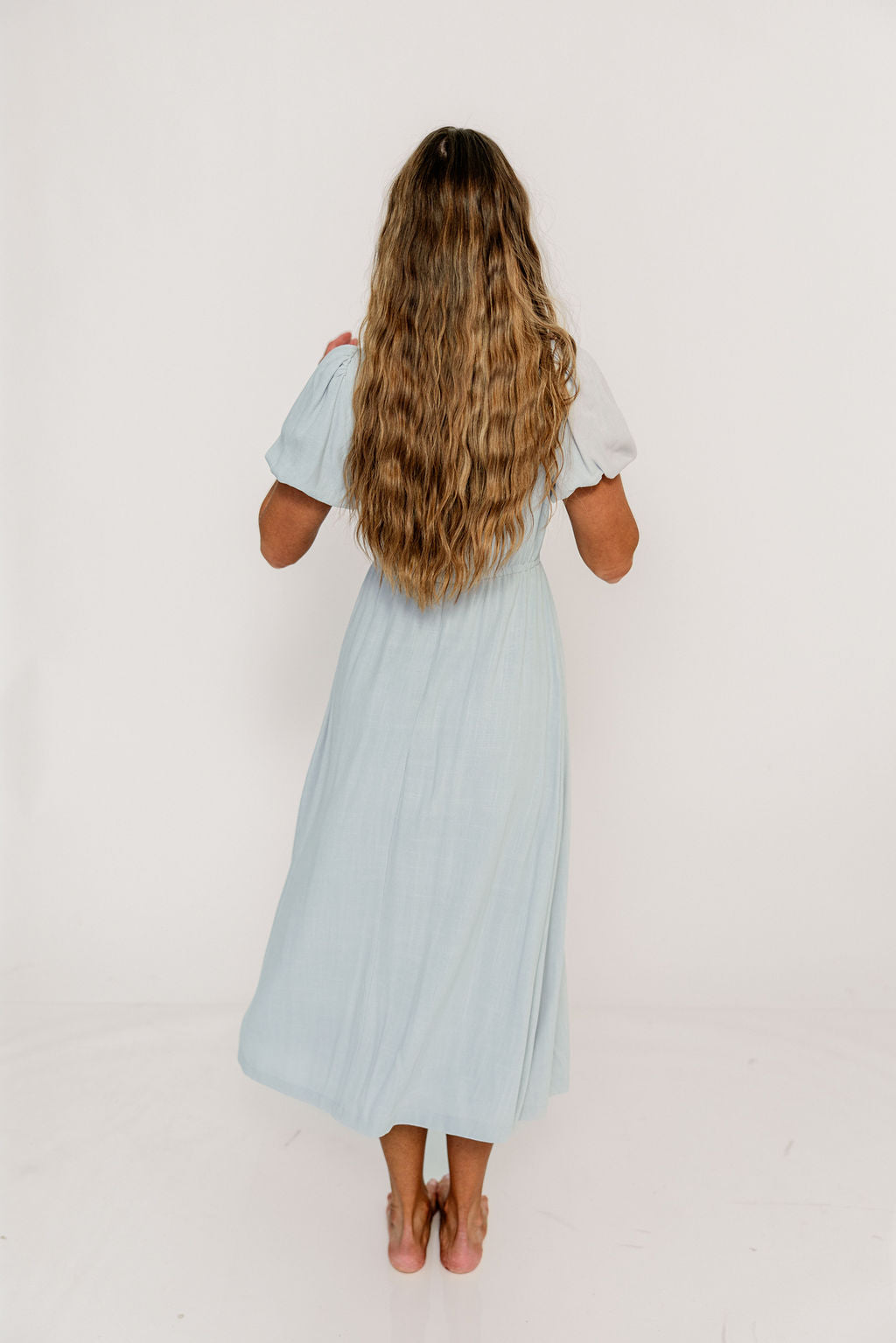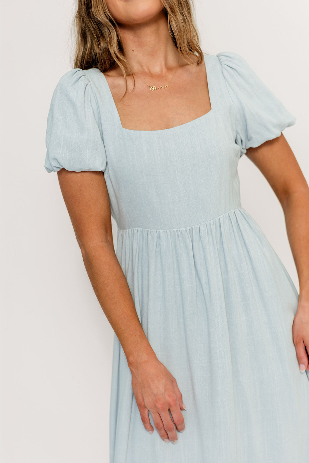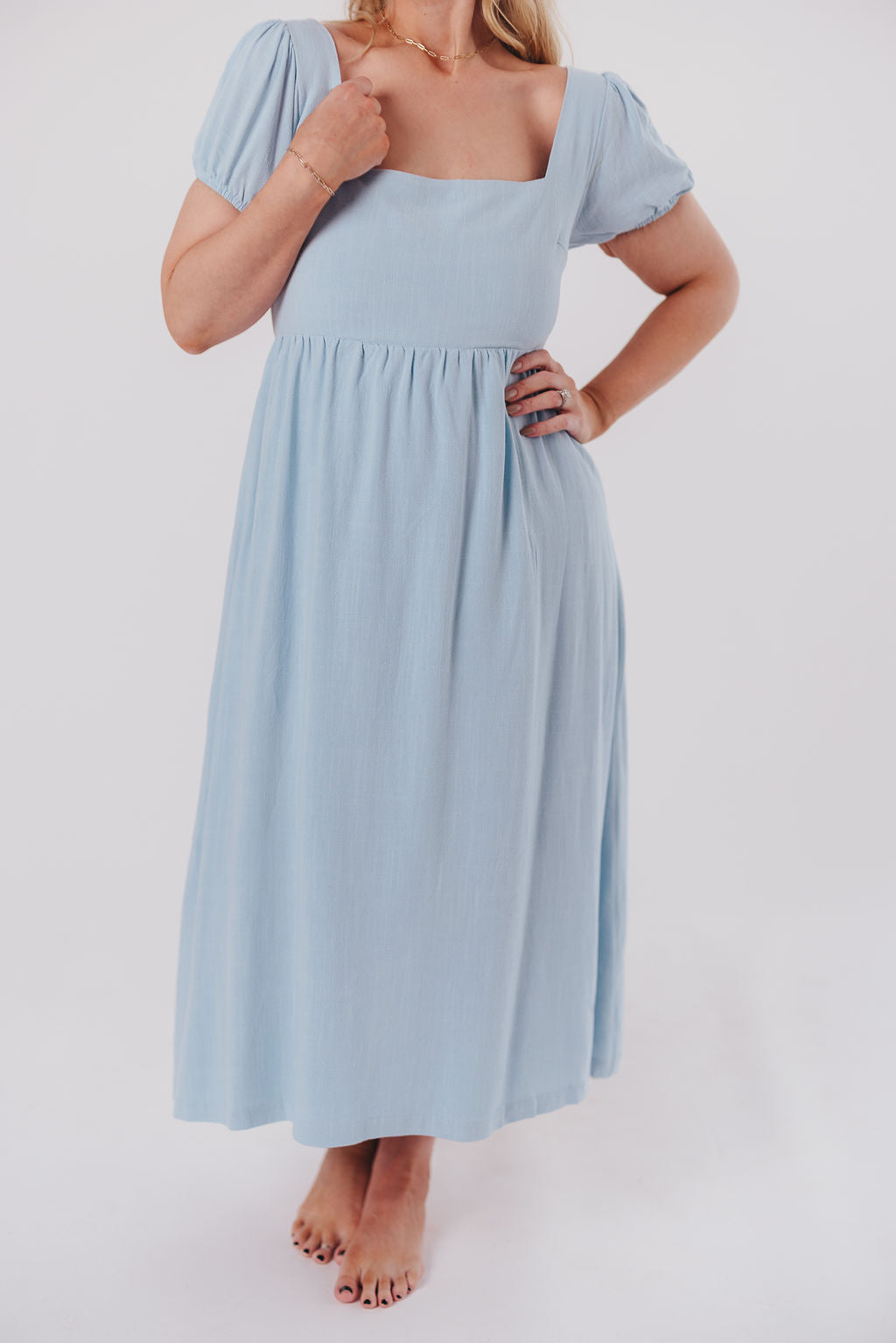 Ainsley Square Neck Midi Dress with Puffed Sleeves in Baby Blue - Bump Friendly *2/25 PRE-ORDER*