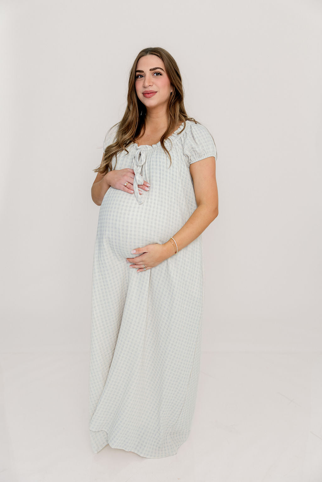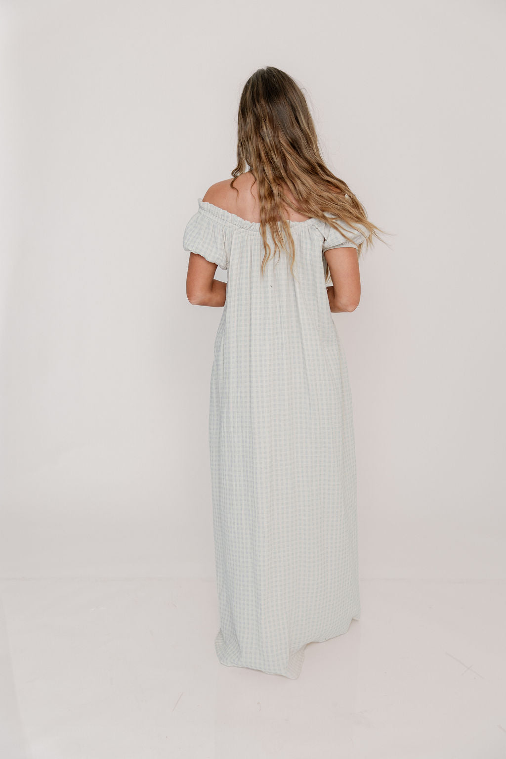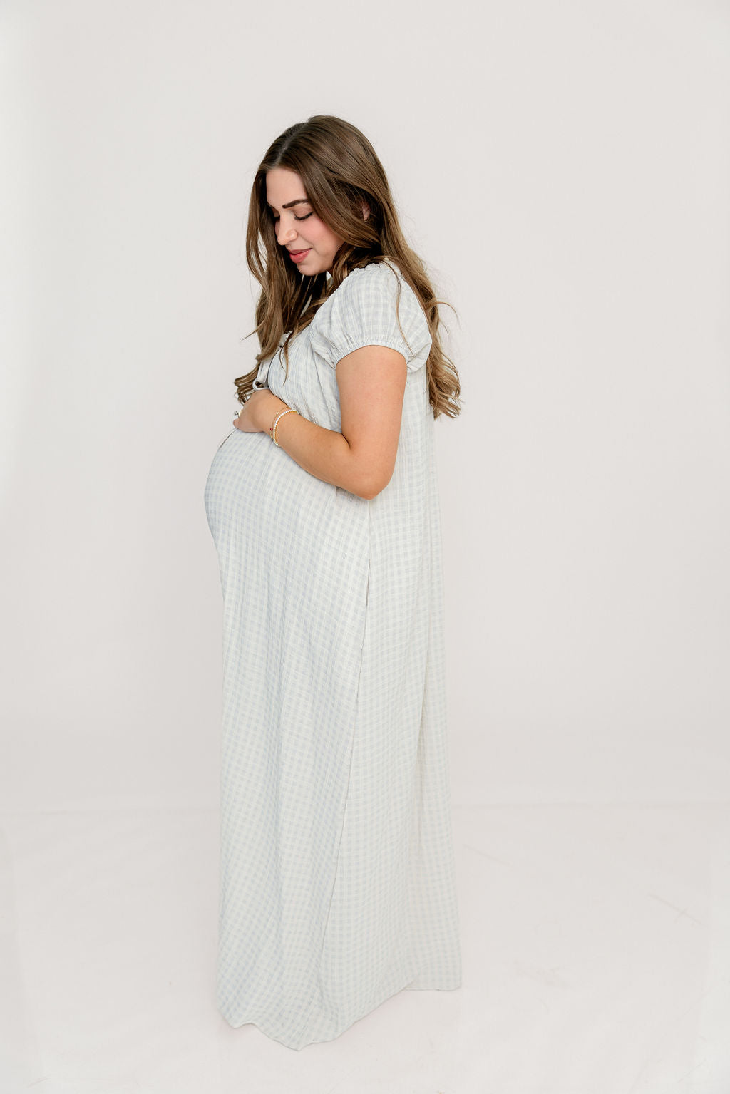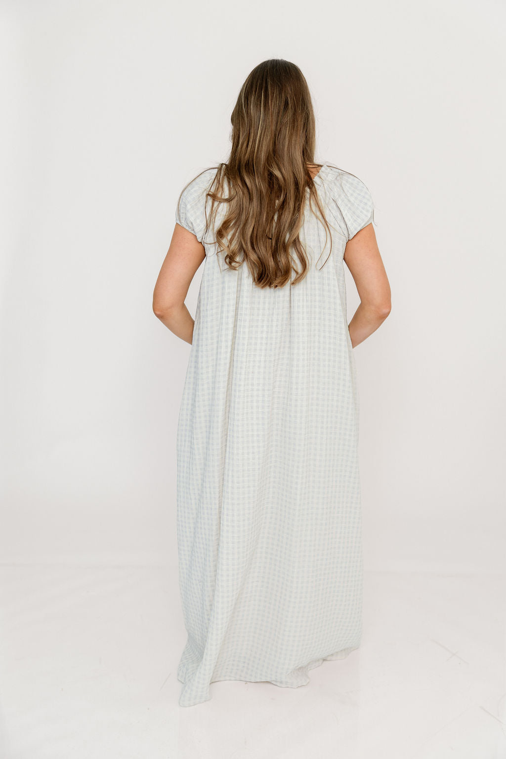 Ensley 100% Cotton Maxi Dress in Baby Blue Plaid - Bump Friendly