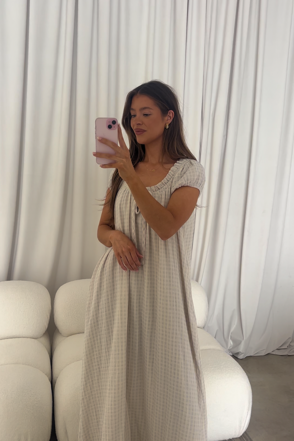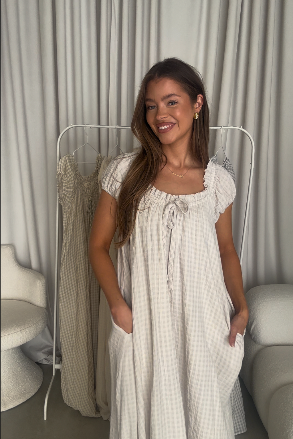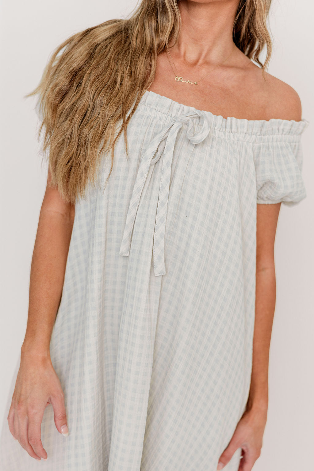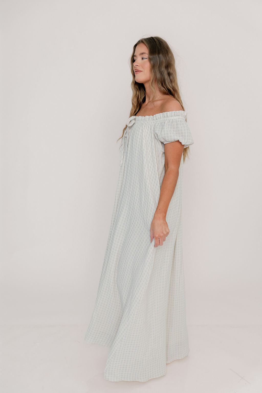 Ensley 100% Cotton Maxi Dress in Baby Blue Plaid - Bump Friendly