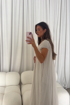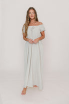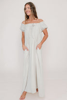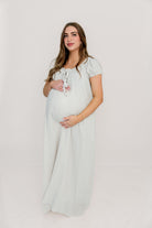The Ensley Maxi Dress offers refined comfort for whatever the day holds! This feminine gown features a relaxed, shift-style silhouette with scooped neckline and dainty ruffle accents. It's an effortless choice for everyday wear, and a premium gift for your favorite postpartum mama!
