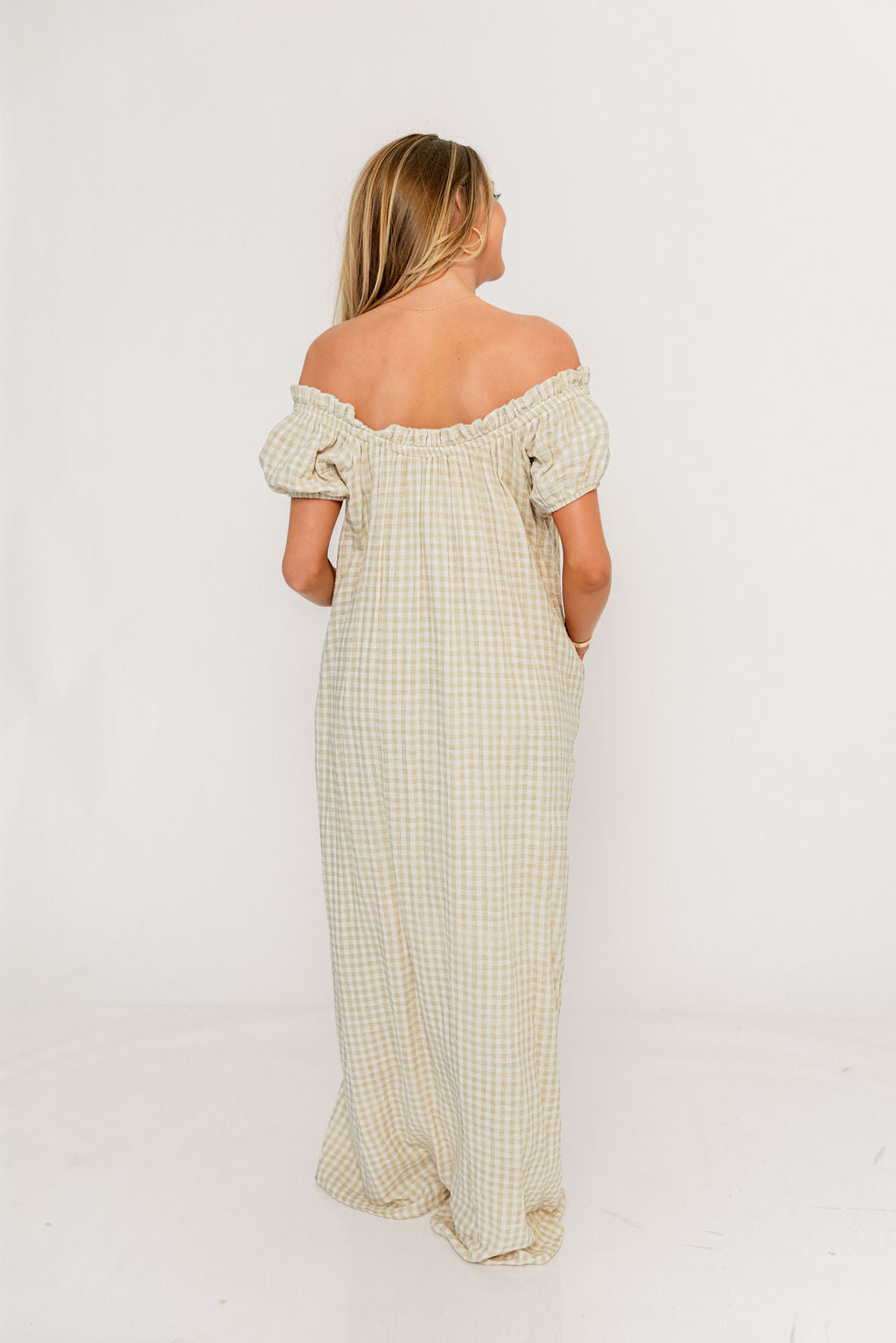 Ensley 100% Cotton Maxi Dress in Green Haze Plaid - Bump Friendly