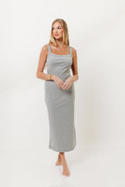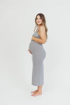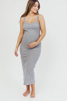 Olivia Square Neck Midi Tank Dress in Heather Grey - Bump Friendly