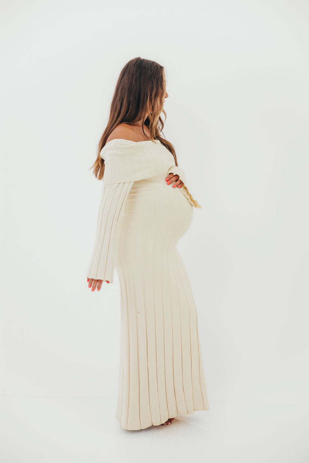 Nora Knit Maxi Dress in Ivory - Bump Friendly