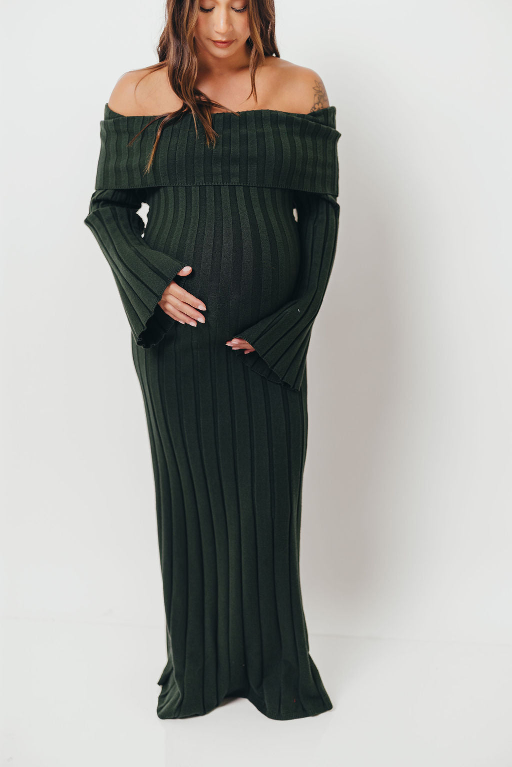 Nora Knit Maxi Dress in Hunter Green - Bump Friendly