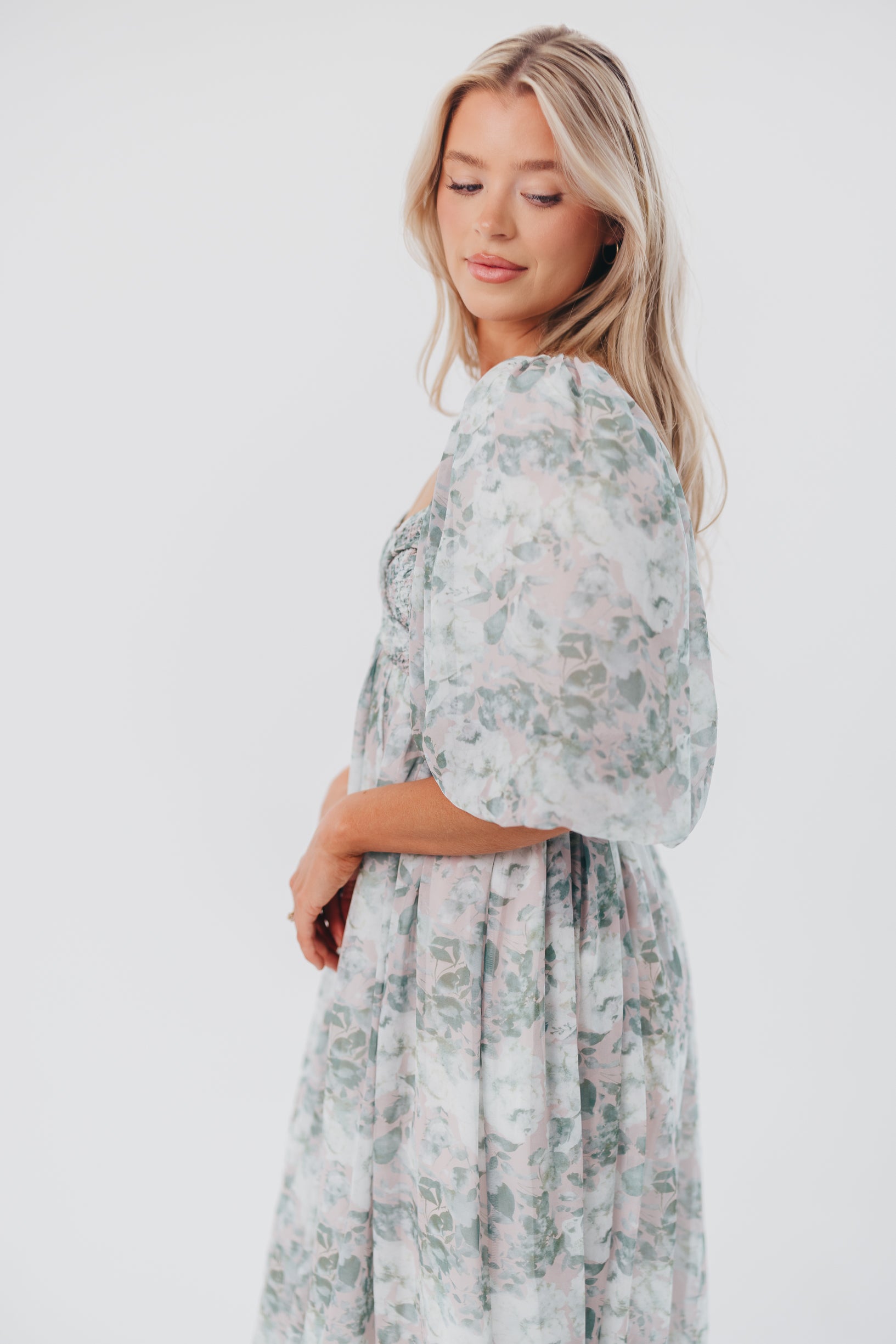 This gorgeous dress is a *vibe* and we are here for it. If you think the Harlow is stunning in photos, wait till you see it in person - this dress will make a statement wherever you go! It features incredible puffed sleeves, a bustier-style structured bodice, and a voluminous skirt. This floral gem is extra-luxe, and 100% the choice when you're looking to stand out from the crowd. Pair it with a glam set of pumps for a night at the symphony, or with heeled sandals for a baby shower - just prepare yourself for the admiring glances!