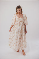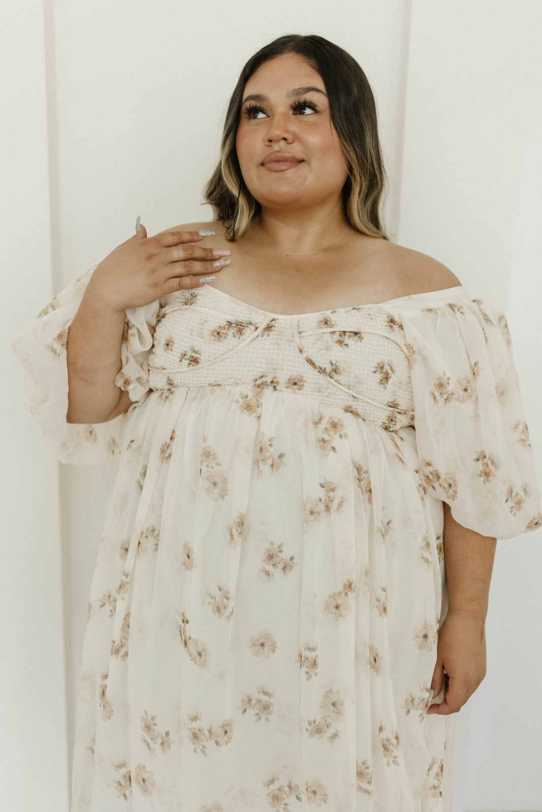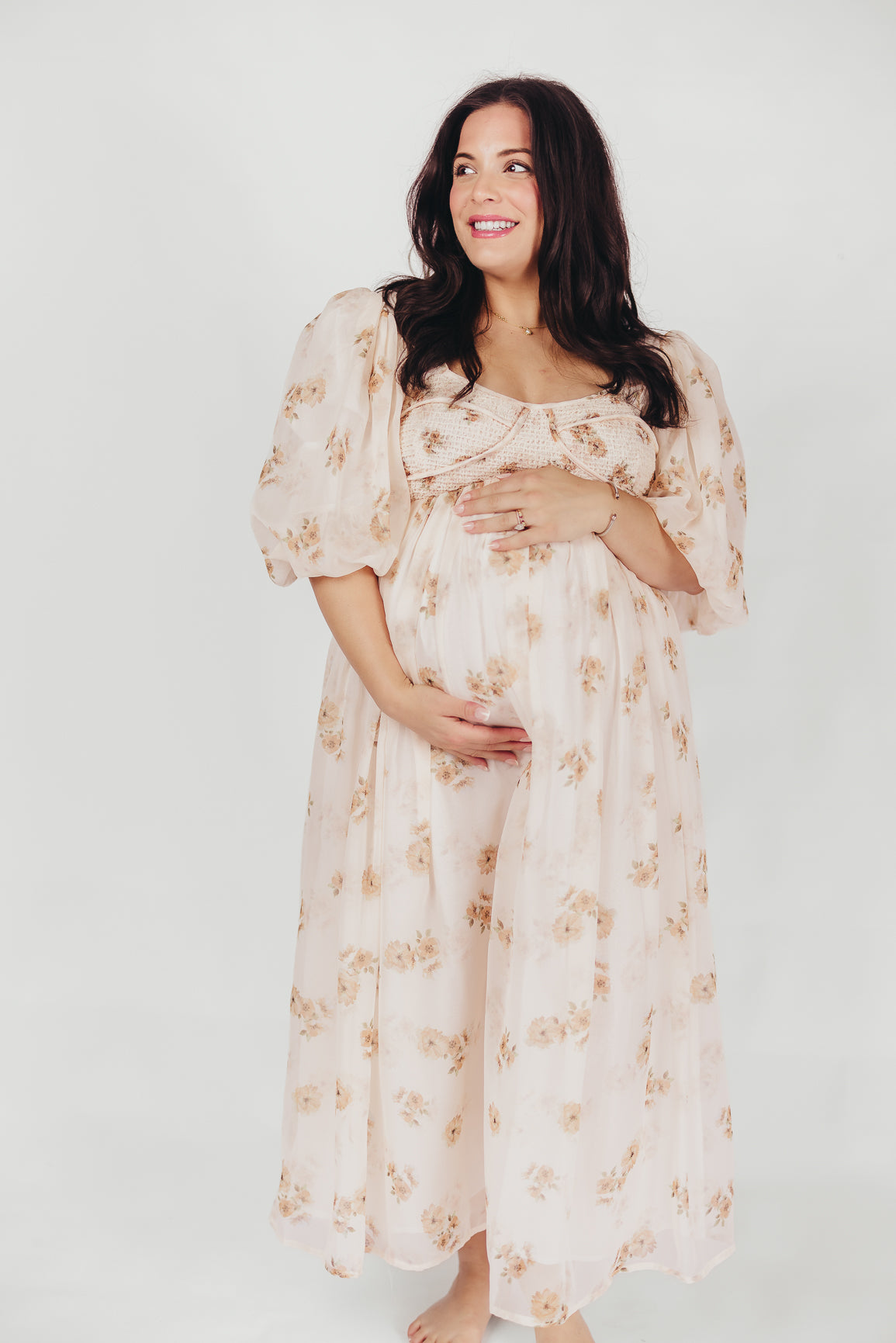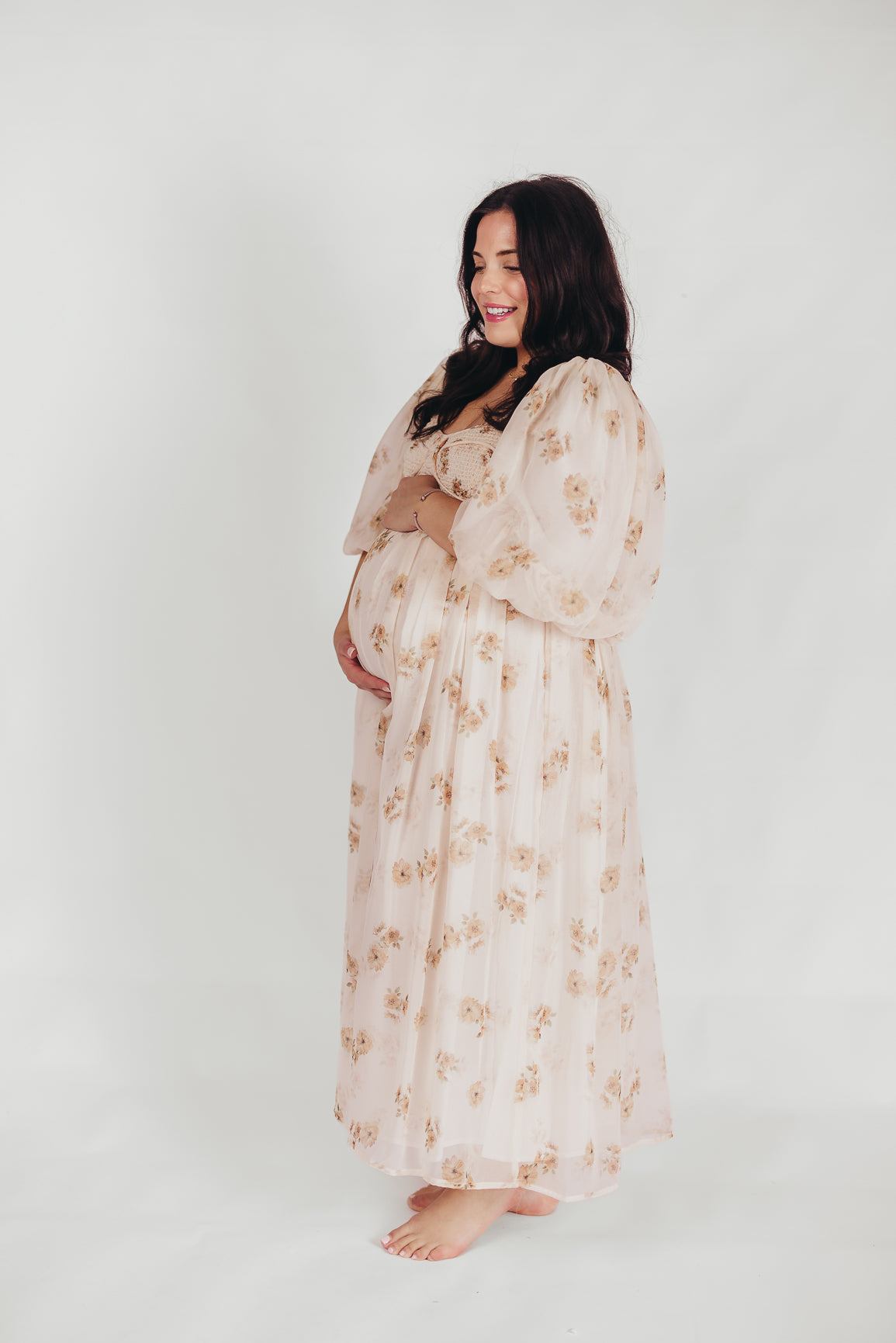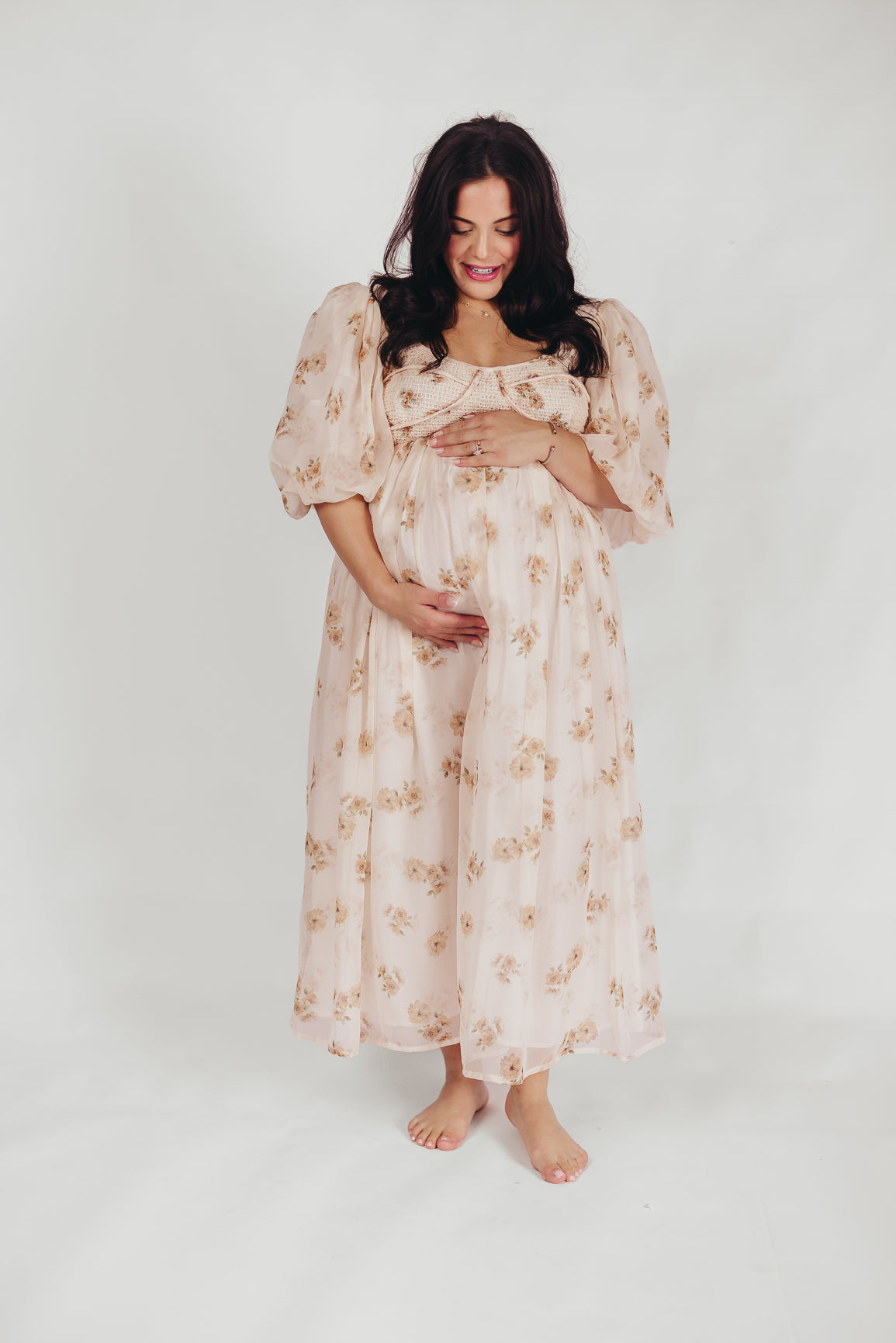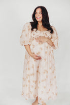 Harlow Maxi Dress in Taupe Floral - Bump Friendly & Inclusive Sizing (S-3XL)