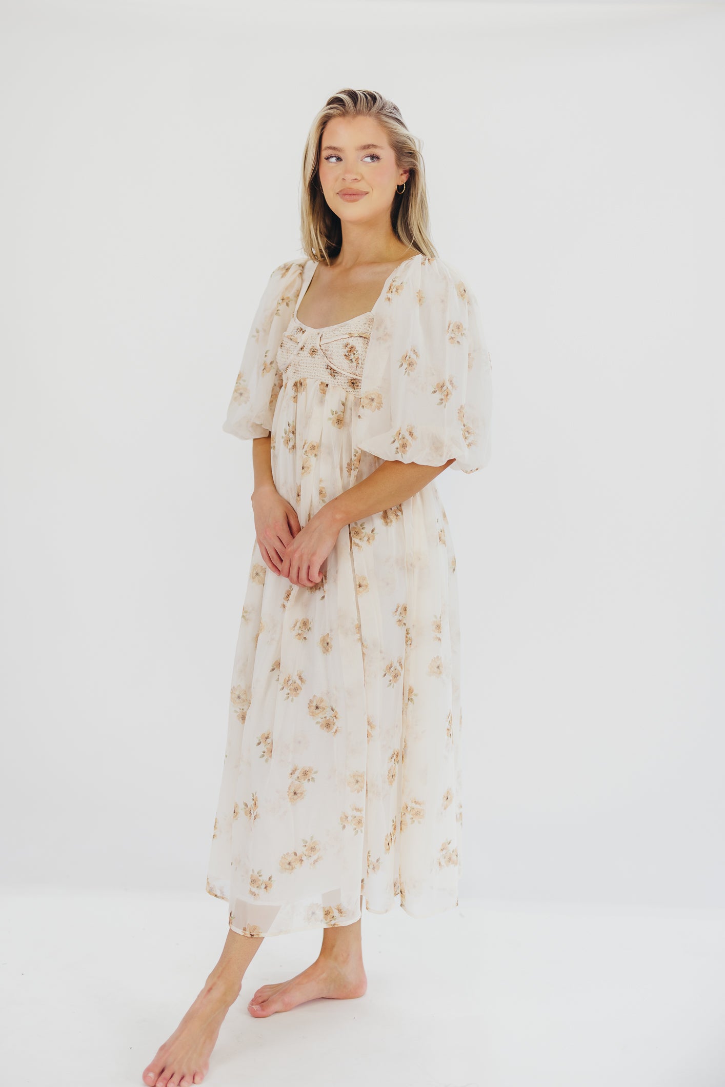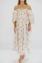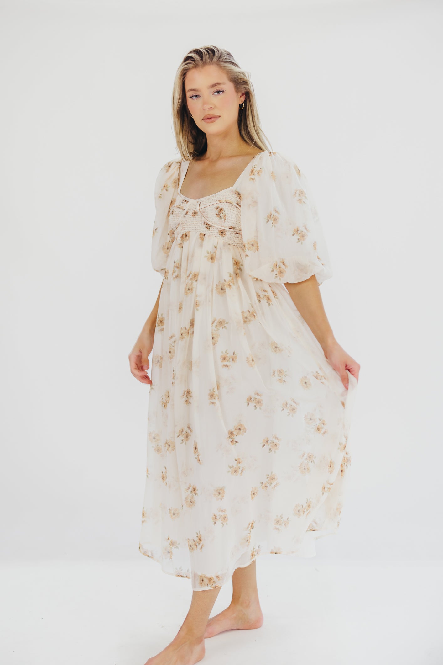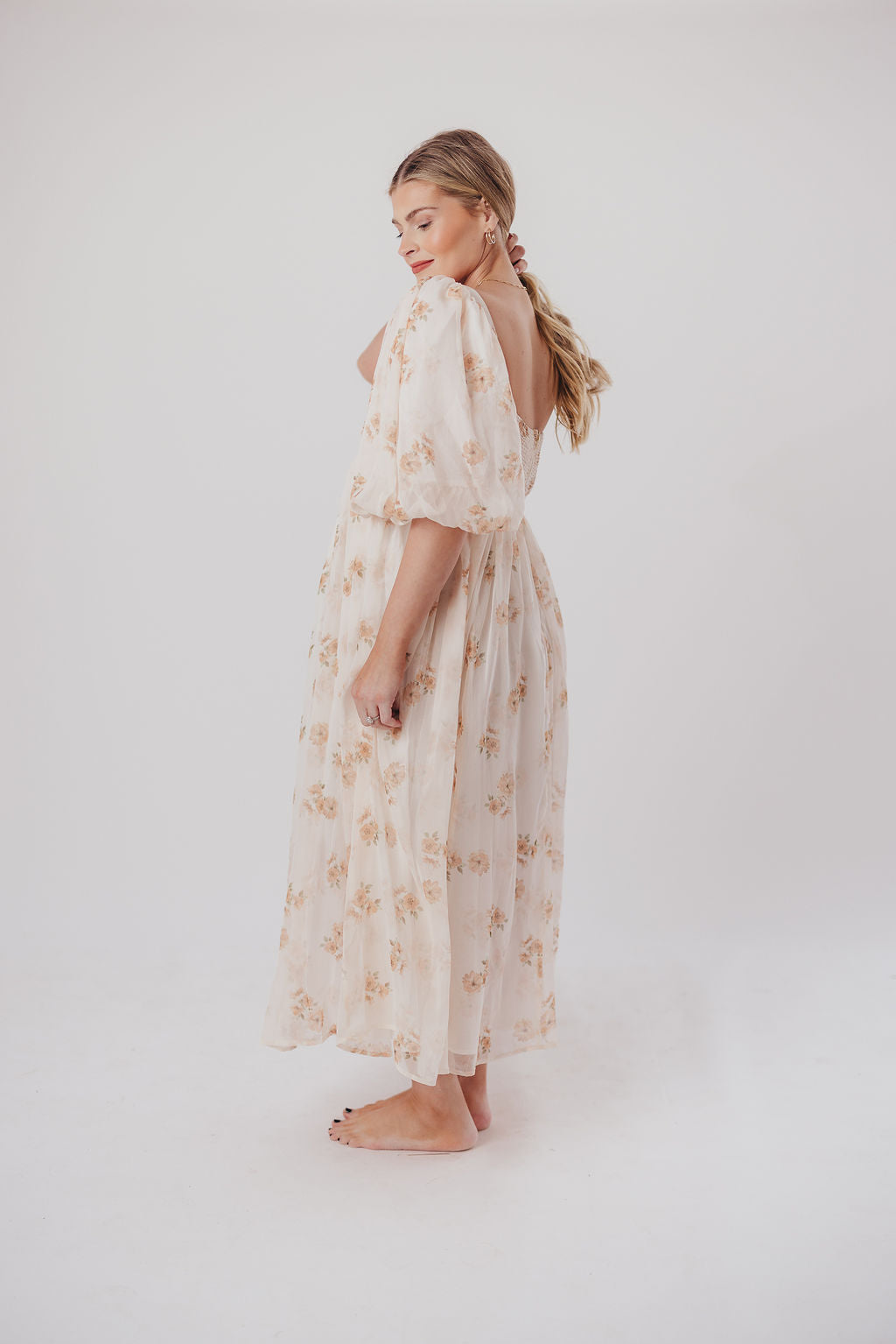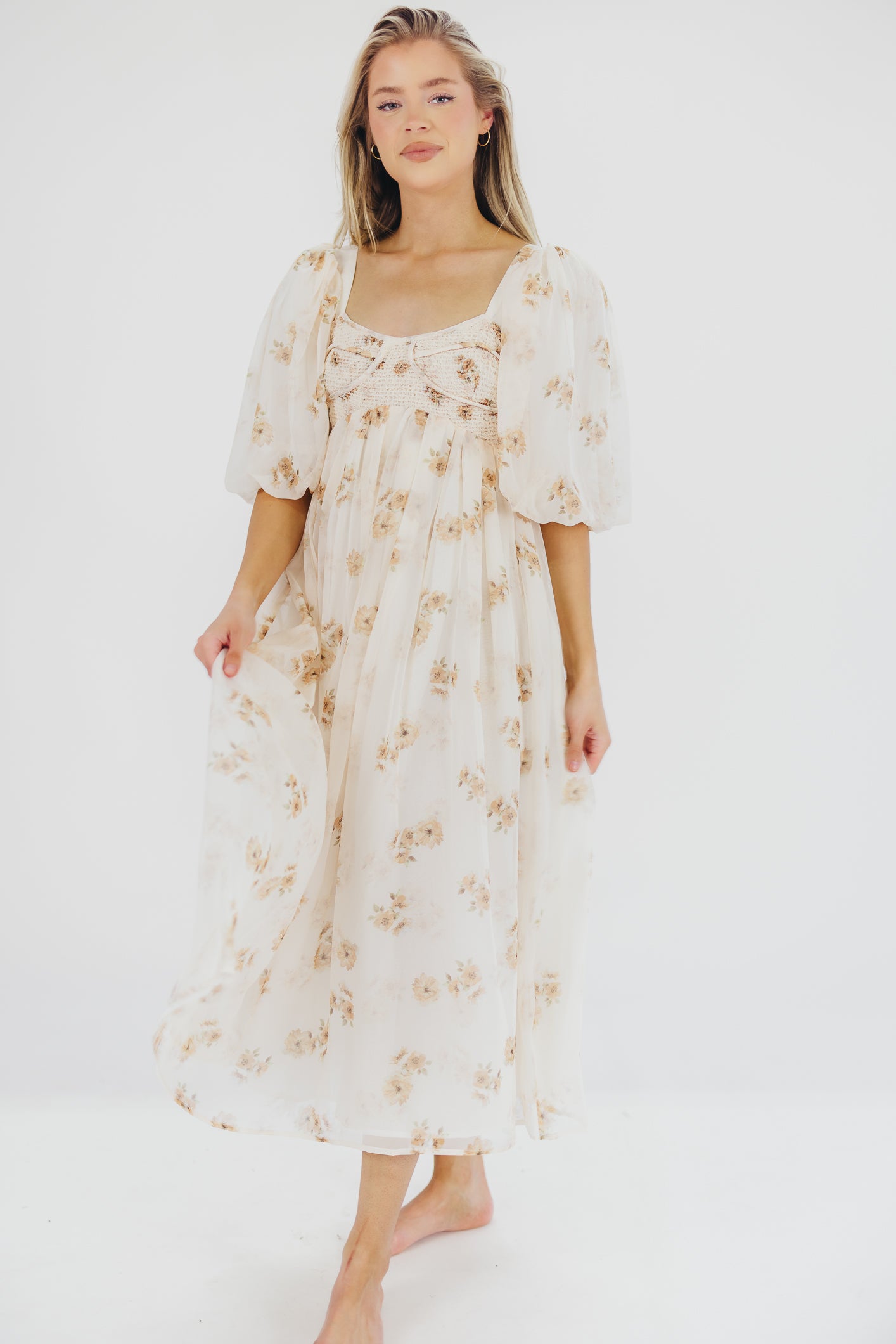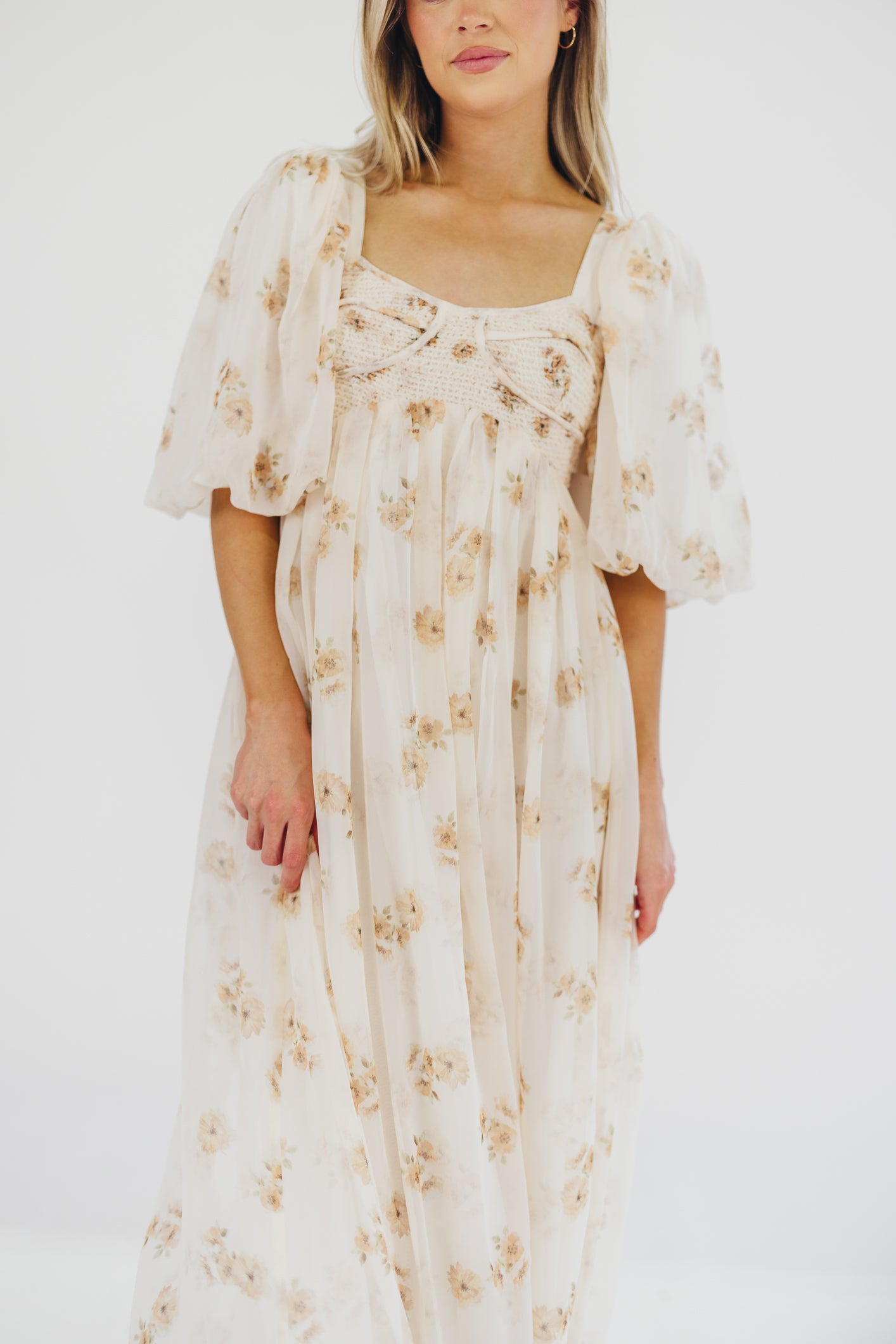 Harlow Maxi Dress in Taupe Floral - Bump Friendly & Inclusive Sizing (S-3XL)